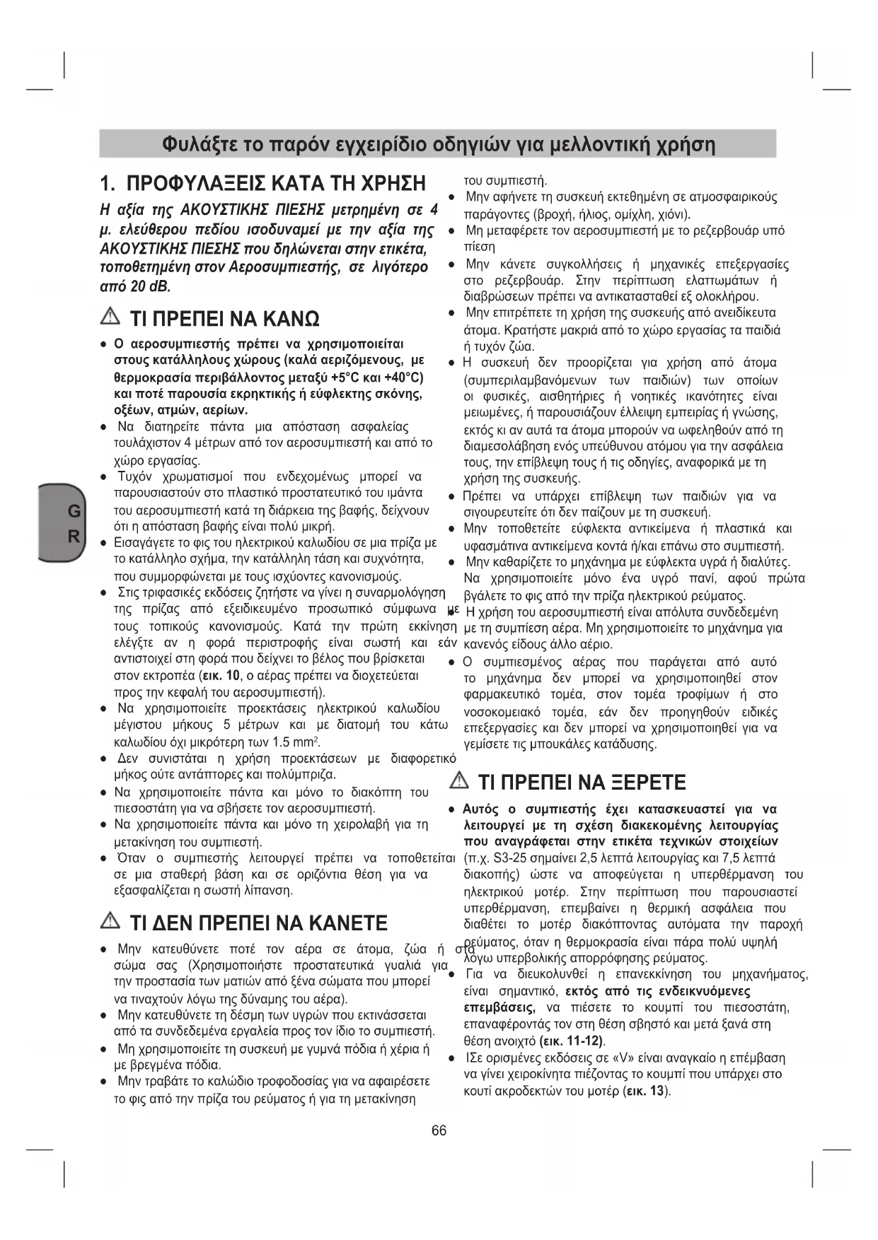| Μείωην της ατόδοσης Συχές εκκίνησείς. Καμηλές τιμές πίσης. | Υπερβολίκές απαίŋσείς απόδοσης, ελέγξετουν διαρρός από ταρόκρος και/η από τις σωληνώσείς. Μπορέτο φίλτρο αναρόφησόςν εἰναι μιουκωμένο. | Αντικataστήσε τις τοιμύχές των υράρο, καθαρίστε ἡντικataστήσε Φιλτρο. |
