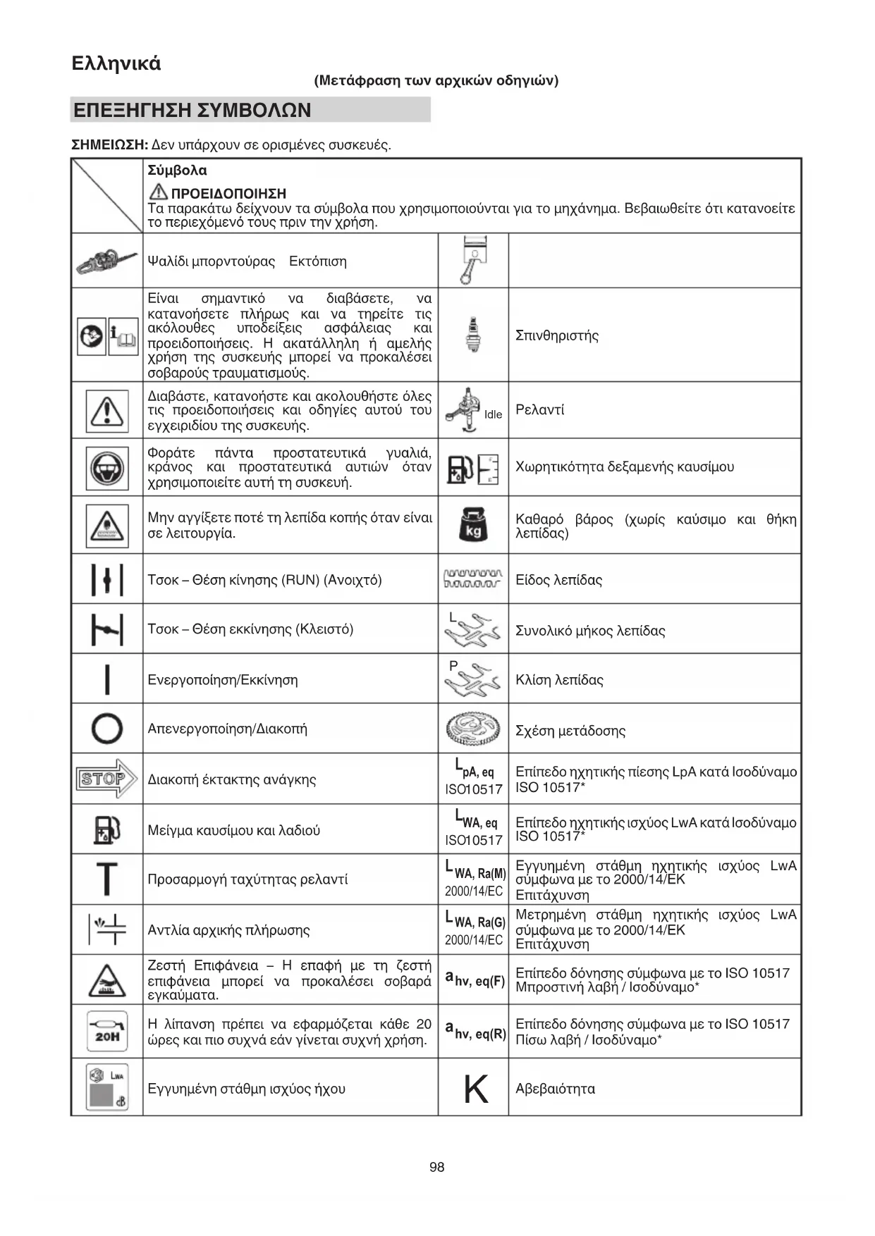 (Μετάφραση των αρχικών οδηγιών) EΠΕΞΗΓΗΣΗ ΣΥΜΒΟΛΩΝ ΣΗΜΕΙΩΣΗ: Δεν υπάρχουν σε ορισμένες συσκευές.