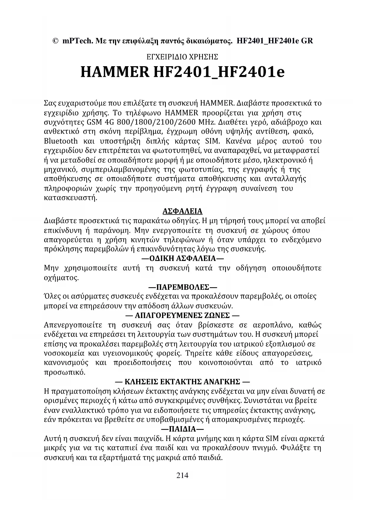 https://hammerphones.com/support-hammer-bow-lte© mPTech. Με την επιφύλαξη παντός δικαιώματος. HF2401_HF2401e GR