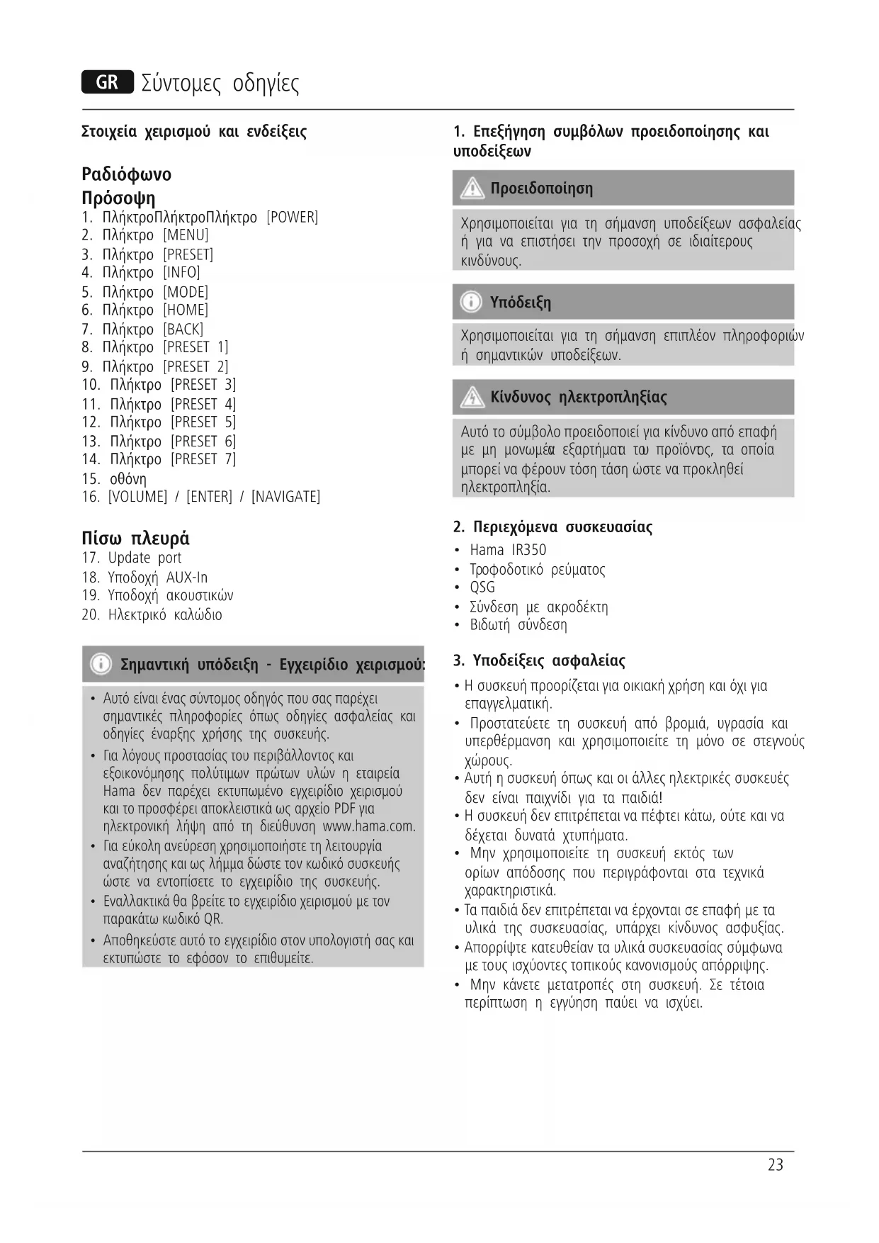 Κατεβάστε τις οδηγίες για το Ραδιόφωνο σε μορφή PDF δωρεάν! Βρείτε το εγχειρίδιό σας IR350 - HAMA και πάρτε ξανά την ηλεκτρονική σας συσκευή στα χέρια σας. Σε αυτή τη σελίδα δημοσιεύονται όλα τα έγγραφα που απαιτούνται για τη χρήση της συσκευής σας. IR350 της μάρκας HAMA.