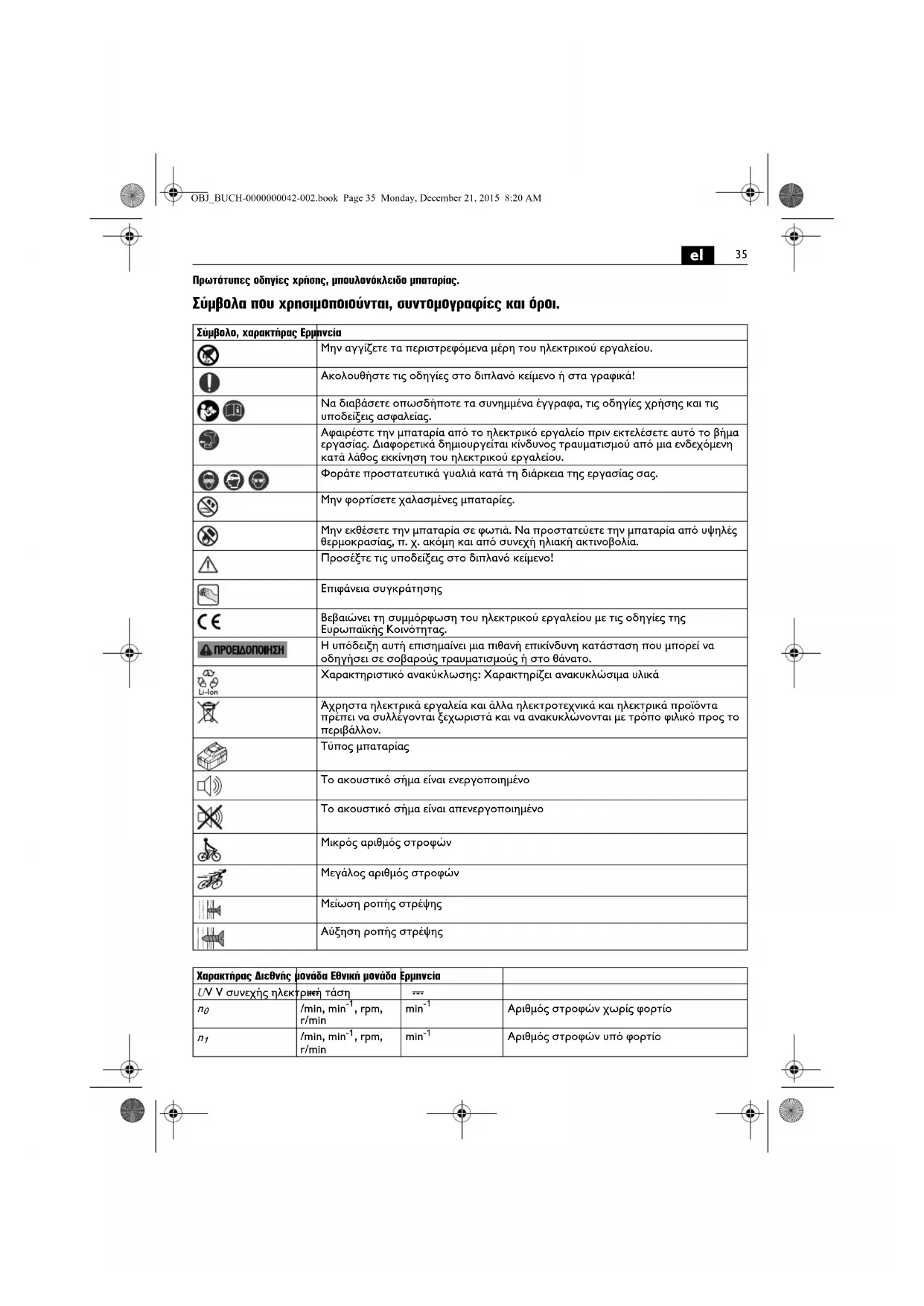 Αριθμός στροφών υπό φορτίο OBJ_BUCH-0000000042-002.book Page 35 Monday, December 21, 2015 8:20 AM36