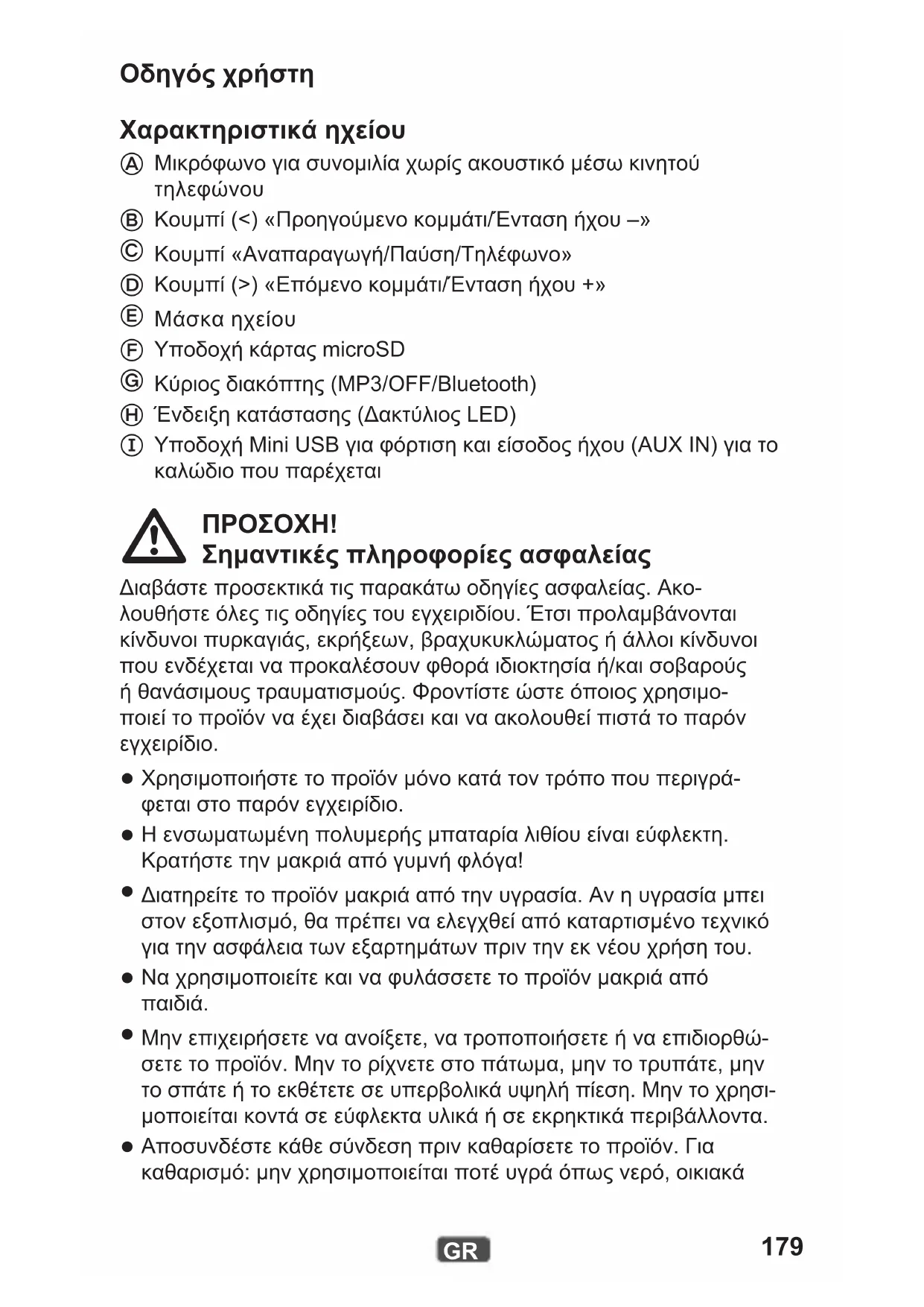 Οδηγός χρήστη Χαρακτηριστικά ηχείου