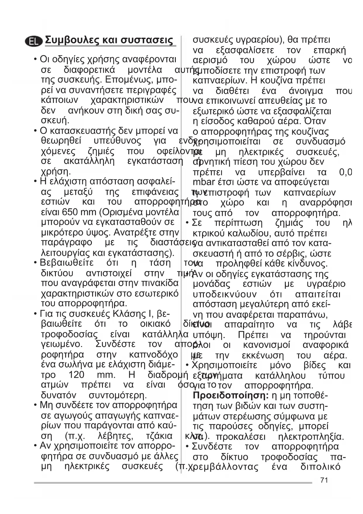 - Μησυνδέετετοναπορροφητήρα σεαγωγούςαπαγωγήςκαπναε- ρίωνπουπαράγονταιαπόκαύ- ση (π.χ. λέβητες, τζάκια κλπ.).