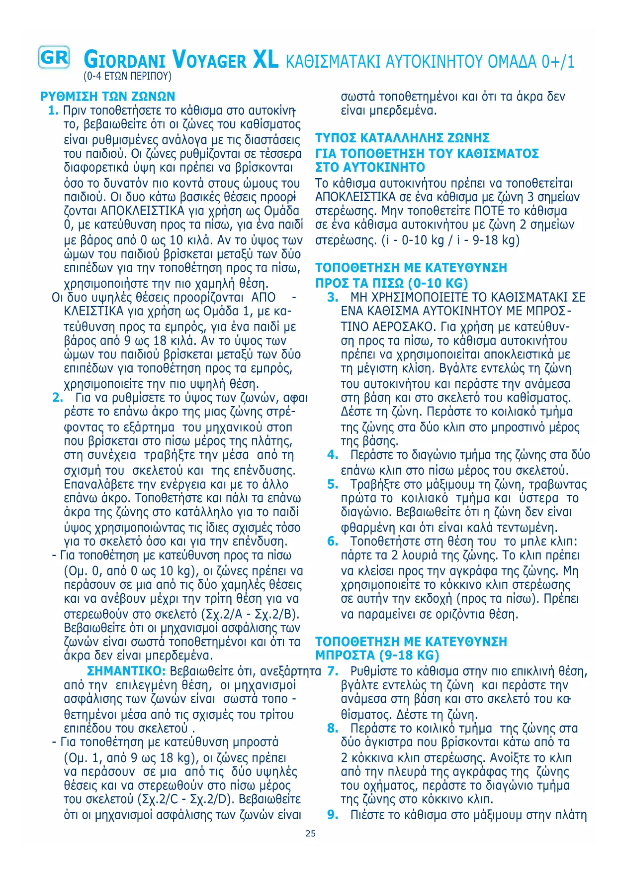 Voyager XL - κάθισμα αυτοκινήτου Giordani - Δωρεάν εγχειρίδιο χρήσης