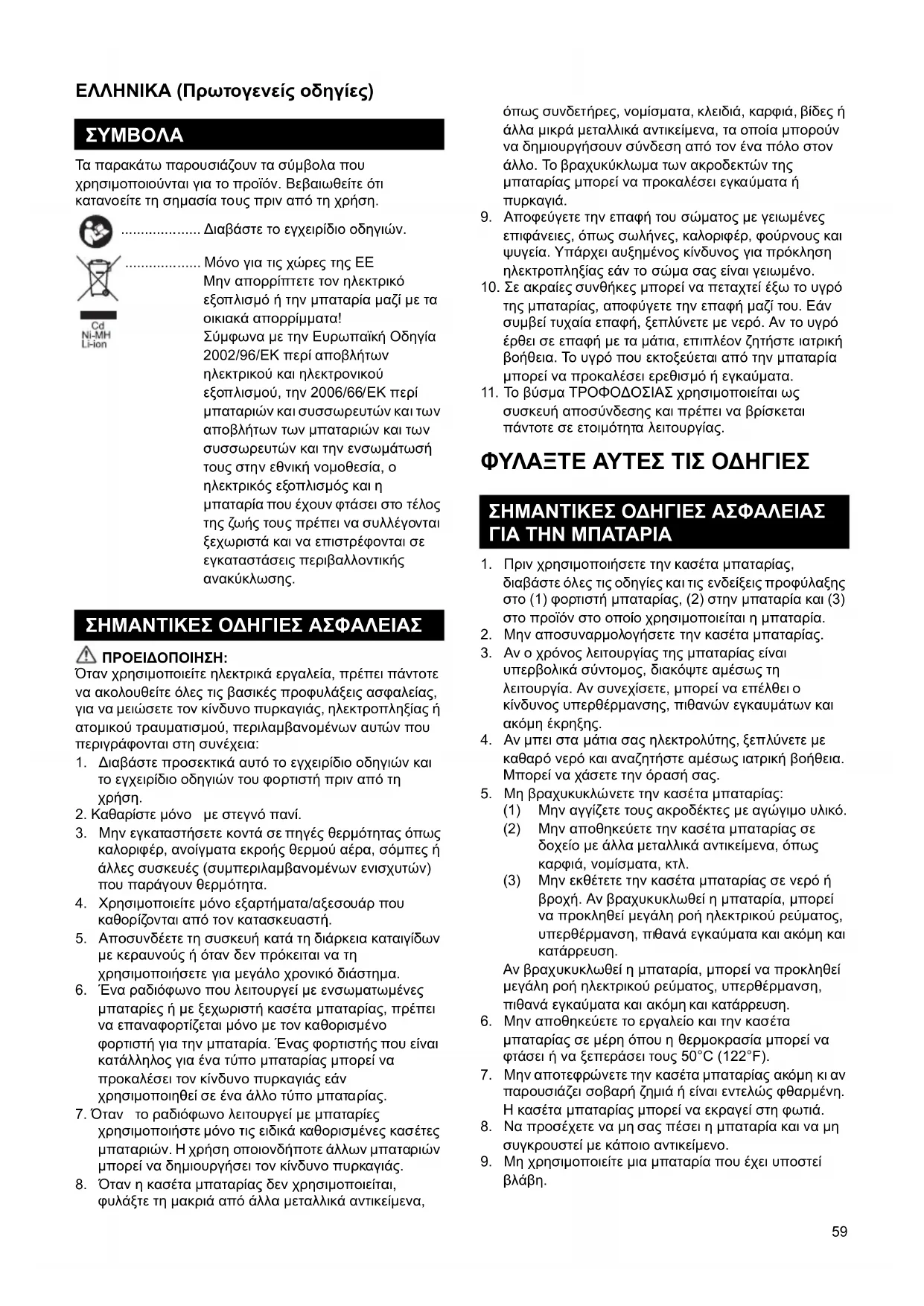 ΣΗΜΑΝΤΙΚΕΣ ΟΔΗΓΙΕΣ ΑΣΦΑΛΕΙΑΣ ΣΗΜΑΝΤΙΚΕΣ ΟΔΗΓΙΕΣ ΑΣΦΑΛΕΙΑΣ ΓΙΑ ΤΗΝ ΜΠΑΤΑΡΙΑ60