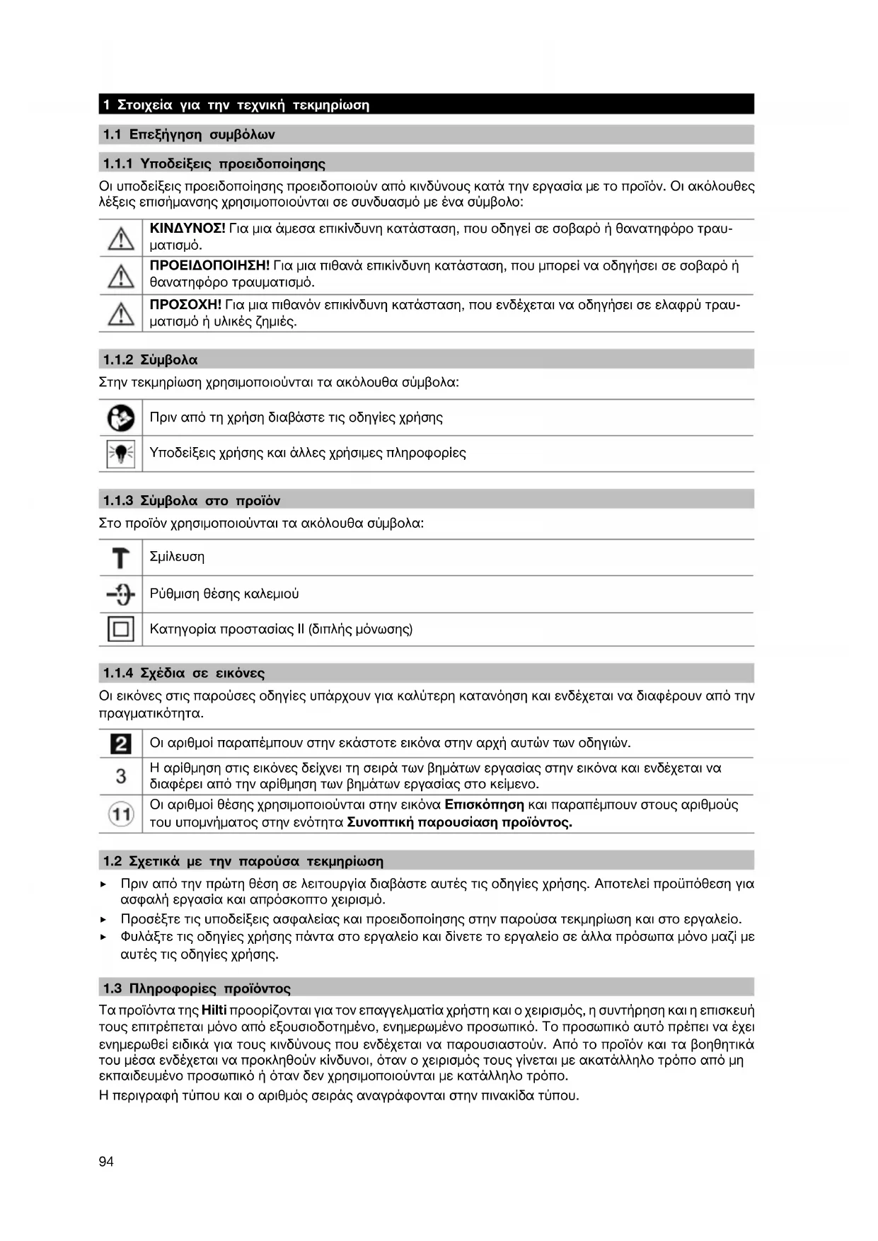 - Σε περίπτωση ζημιών και/ή δυσλειτουργιών, μην χρησιμοποιείται το ηλεκτρικό εργαλείο. Αναθέστε αμέσως την επισκευή στο σέρβις της Hilti.