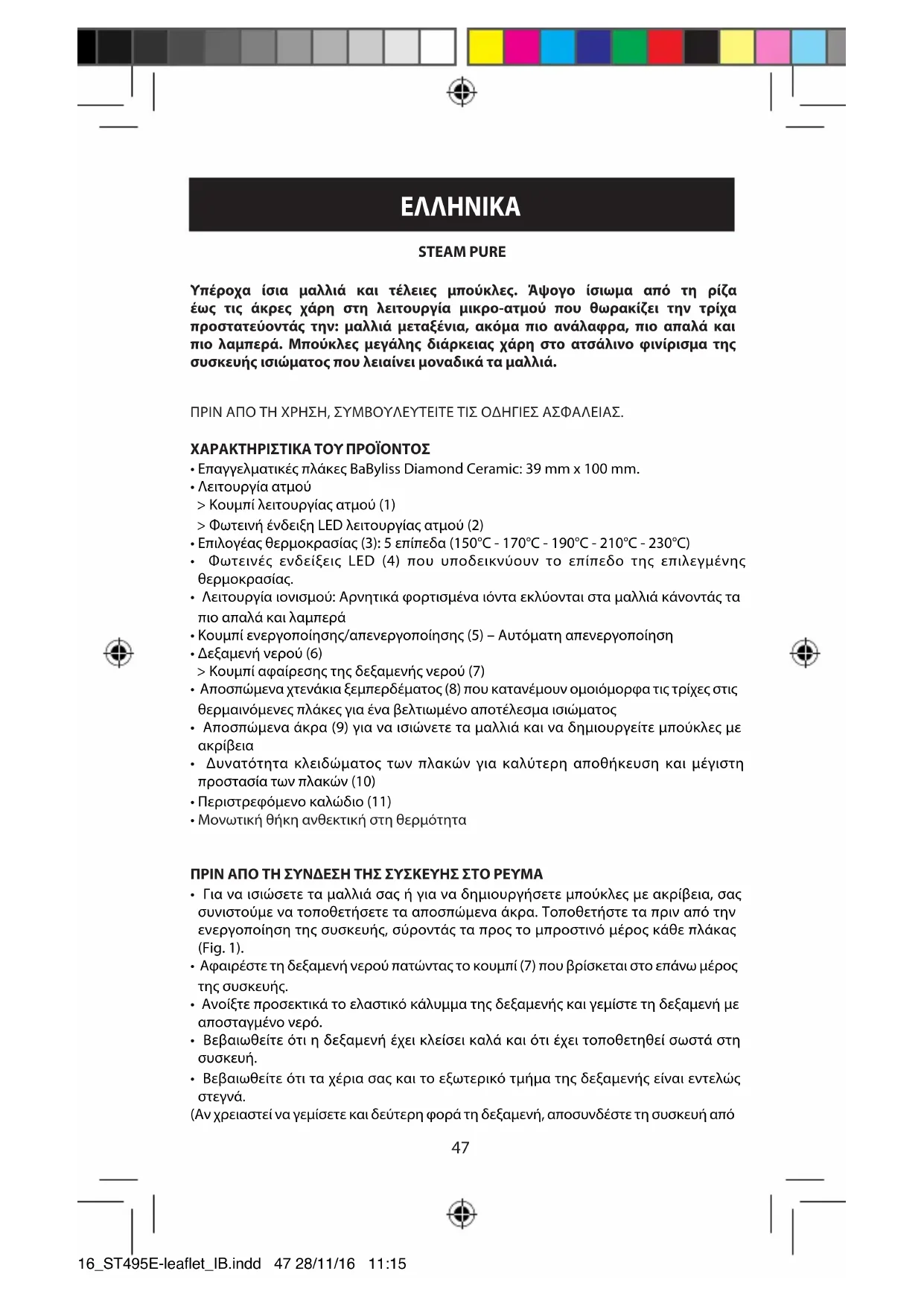 ΕΓΧΕΙΡΊΔΙΟ ΧΡΉΣΗΣ Steam Pure ST495E BABYLISS
