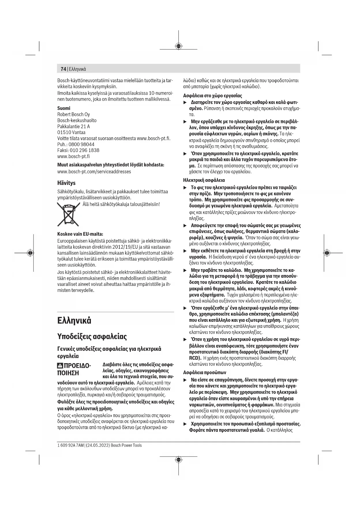 Robert Bosch A.E. Ερχείας 37 19400 Κορωπί – Αθήνα Τηλ.: 210 5701258 Φαξ: 210 5701283 Email: pt@gr.bosch.com www.bosch.com www.bosch-pt.gr 1 609 92A 7AM | (24.05.2022) Bosch Power ToolsTürkçe | 81 Περαιτέρω διευθύνσεις σέρβις θα βρείτε στην ηλεκτρονική διεύθυνση: www.bosch-pt.com/serviceaddresses