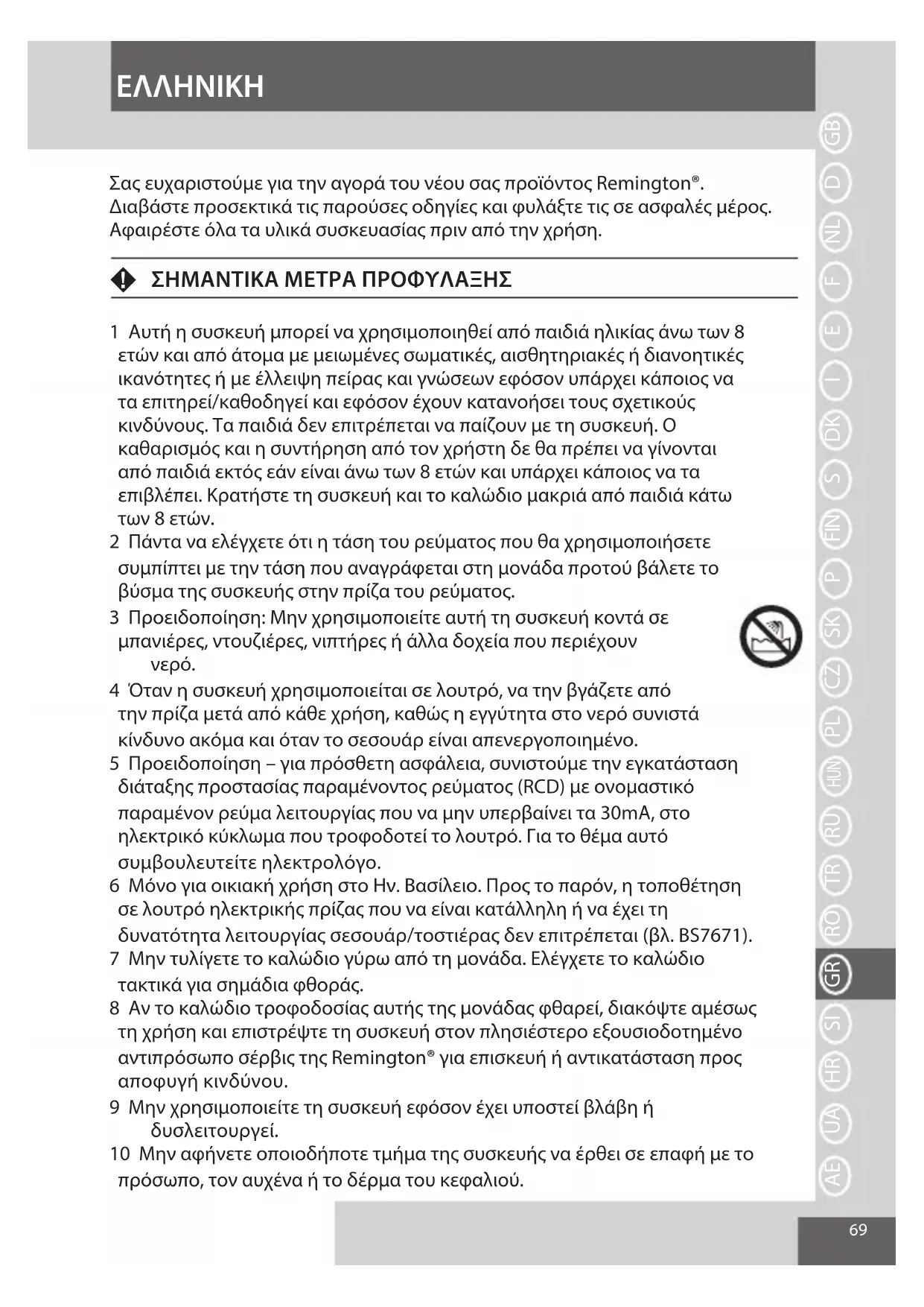 Σας ευχαριστούμε για την αγορά του νέου σας προϊόντος Remington®. Διαβάστε προσεκτικά τις παρούσες οδηγίες και φυλάξτε τις σε ασφαλές μέρος. Αφαιρέστε όλα τα υλικά συσκευασίας πριν από την χρήση.