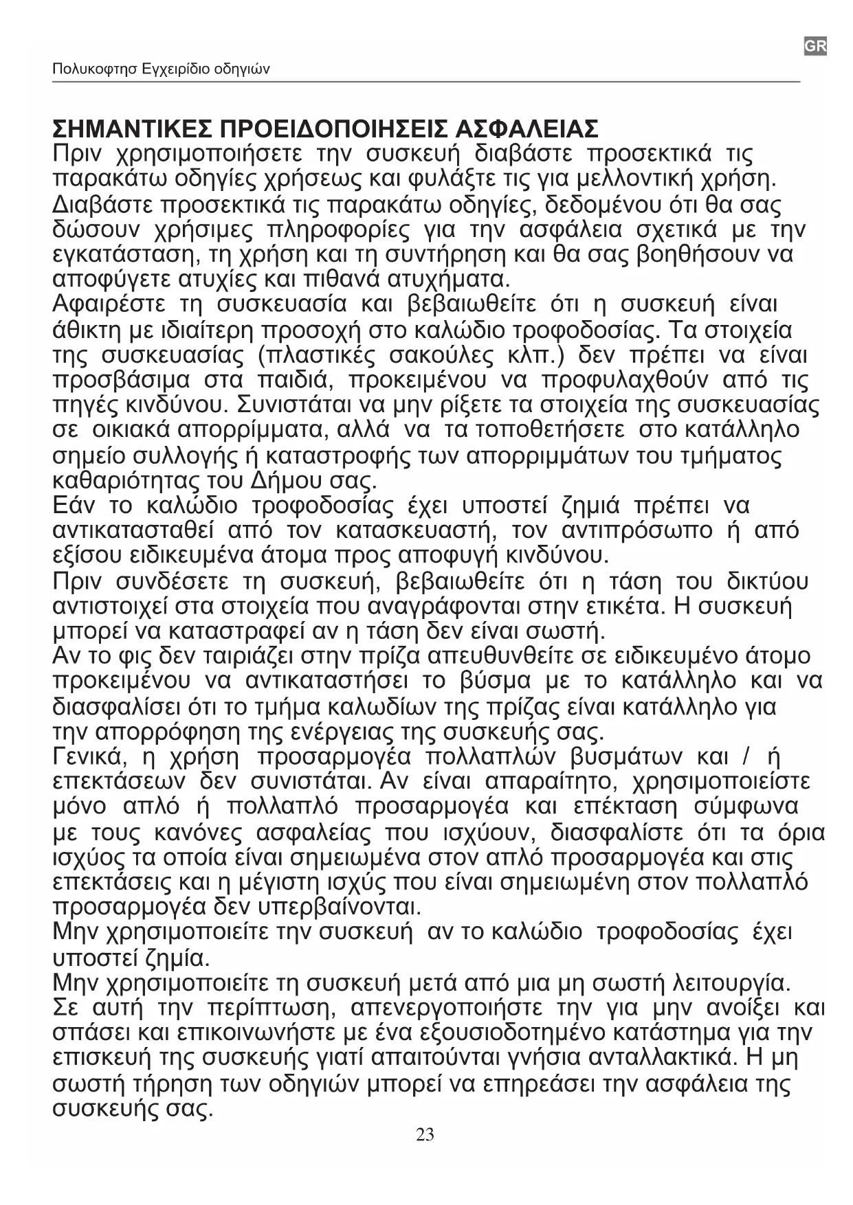 Noté μην τραβάτε Καλώδιο τροφόδοσίας γίαν αποσυνδέσετε Σην συσκεύŋ.Βεβαιωθείτε ὄτι Καλώδιο δεν κρέμεται από Σην ἀκρη Σου τραπεζιόύ ἡπό Σουγκόντης κουζίνας και δεν ερχεται σε ἀπαφή με Θερμεός ἡπίφάνειες