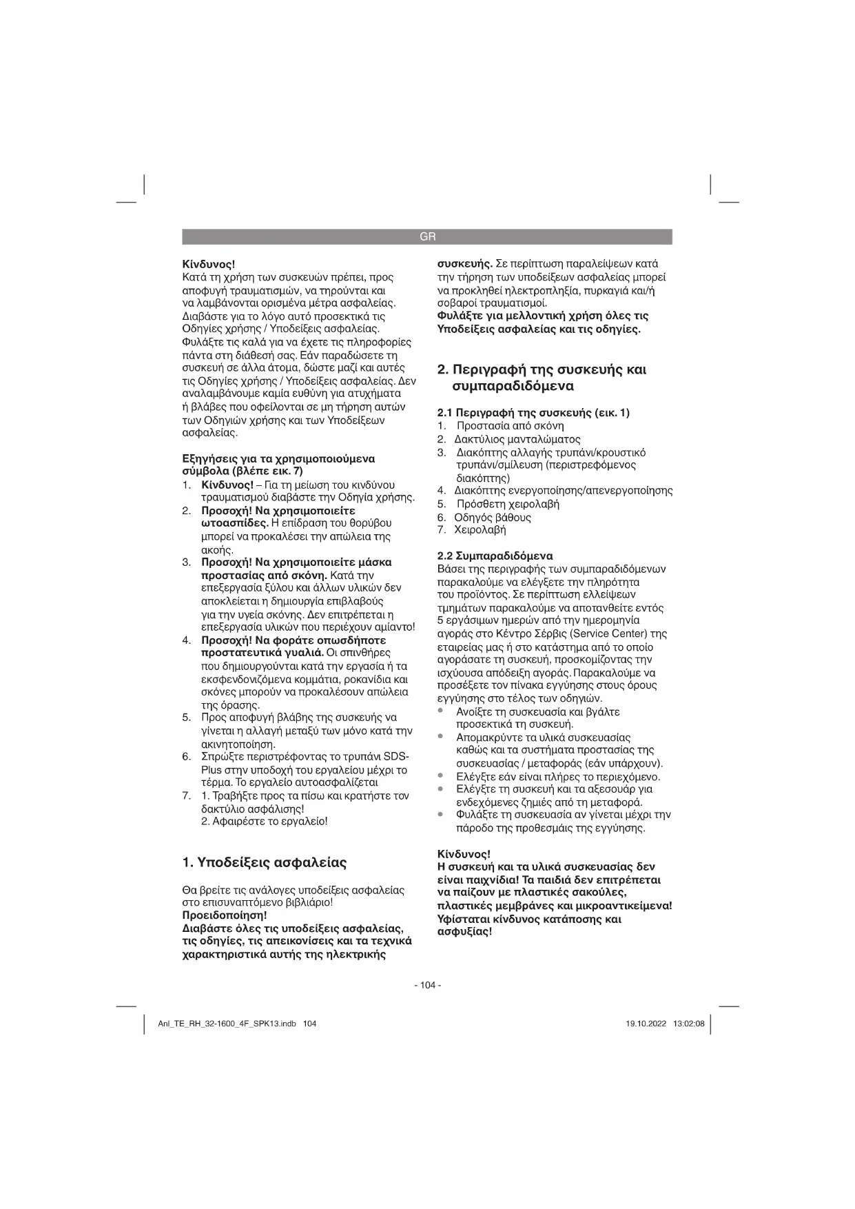 Σαν χρήστης πρέπει να εξασφαλίσετε, εάν χρειαστεί μετά από συνεννόηση με την αρμόδια Επιχείρηση Ηλεκτρισμού, ότι το σημείο σας σύνδεσης πληρεί μία από τις δύο απαιτήσεις α) ή β). Anl_TE_RH_32-1600_4F_SPK13.indb 109Anl_TE_RH_32-1600_4F_SPK13.indb 109 19.10.2022 13:02:1019.10.2022 13:02:10GR