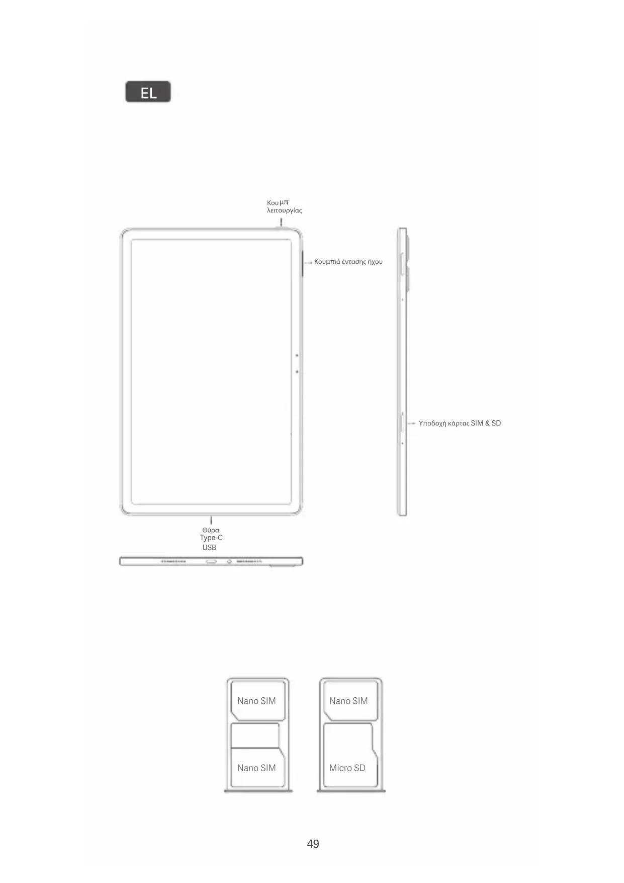 Nano SIM Nano SIM Nano SIM Micro SD 49Σας ευχαριστούμε που επιλέξατε το Redmi Pad Pro 5G Πατήστε παρατεταμένα το κουμπί λειτουργίας για να ενεργοποιήσετε τη