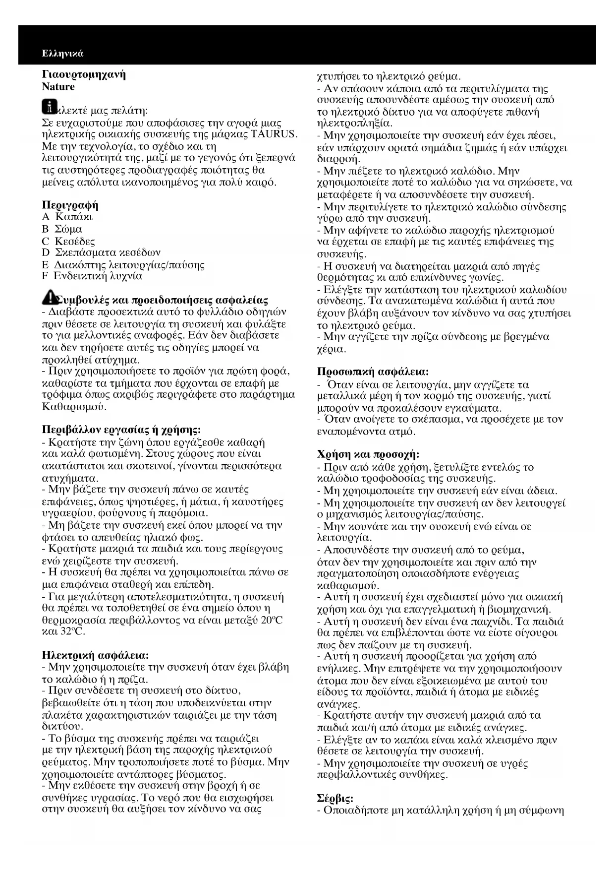 ΕΓΧΕΙΡΊΔΙΟ ΧΡΉΣΗΣ Nature TAURUS