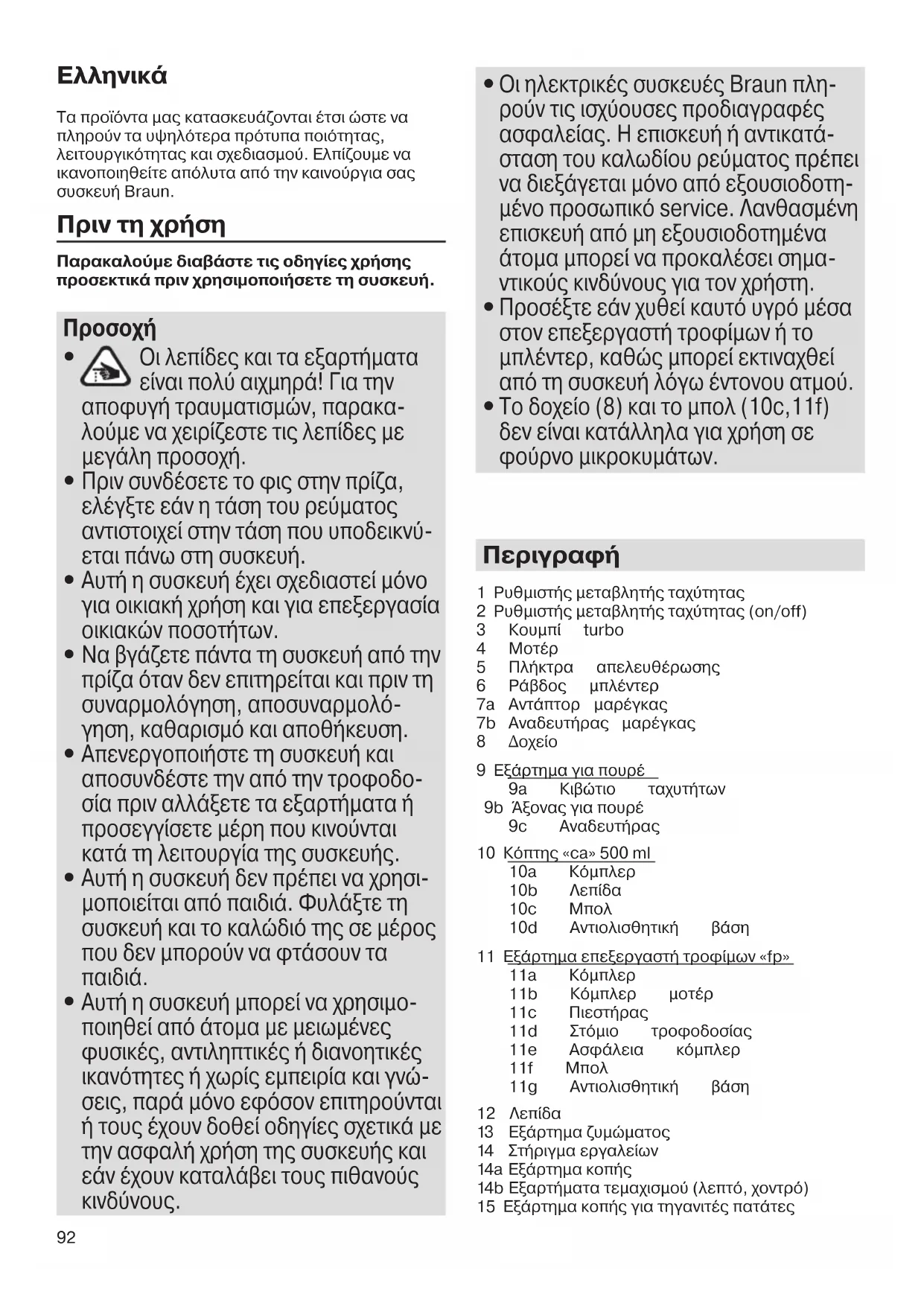 Τα προϊόντα μας κατασκευάζονται έτσι ώστε να πληρούν τα υψηλότερα πρότυπα ποιότητας, λειτουργικότητας και σχεδιασμού. Ελπίζουμε να ικανοποιηθείτε απόλυτα από την καινούργια σας συσκευή Braun. Πριν τη χρήση Παρακαλούμε διαβάστε τις οδηγίες χρήσης προσεκτικά πριν χρησιμοποιήσετε τη συσκευή.