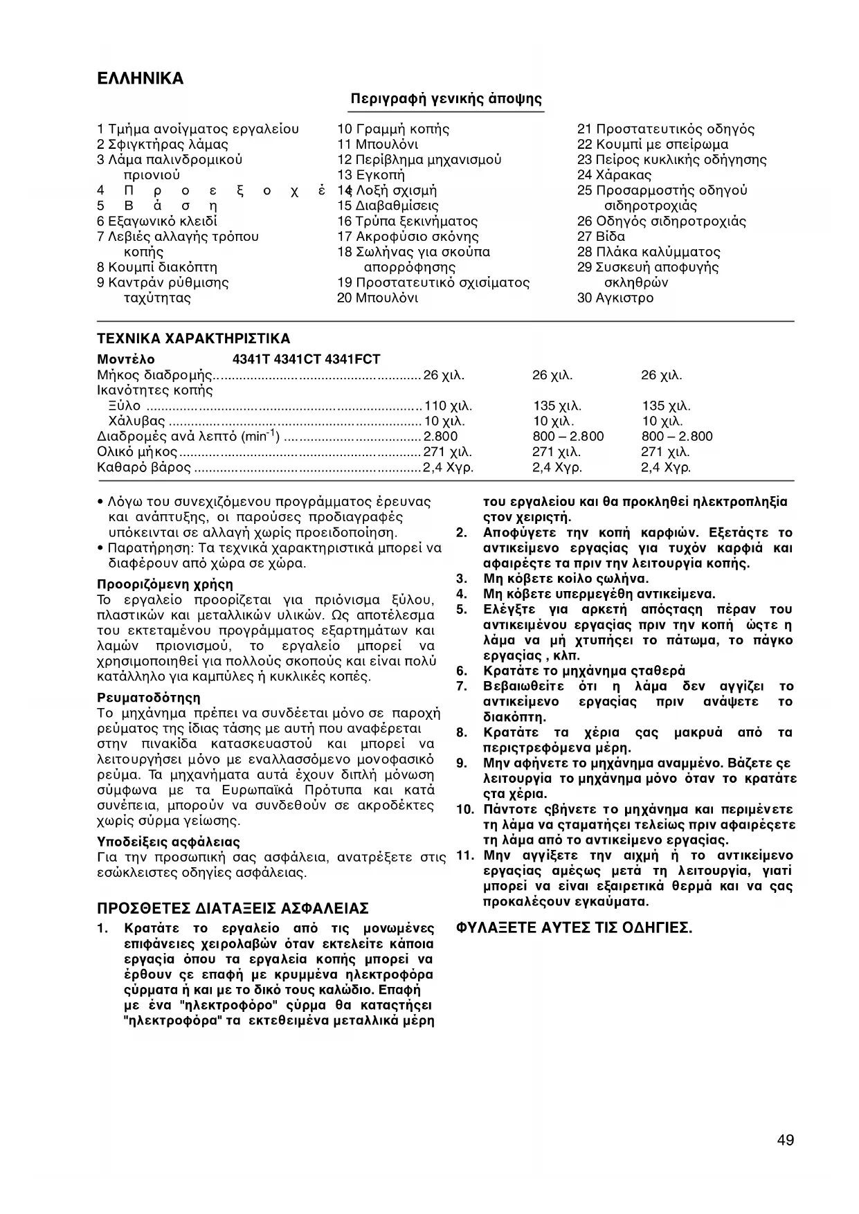 - NaVTOTE βεβαινεστε οι Φιηχανημα εΙναι Σβηκτό και βγαλμενο από Φιρεύμα πριν τοῦθετηςετέ η ἀφαιρεσετέ τη λάμα.