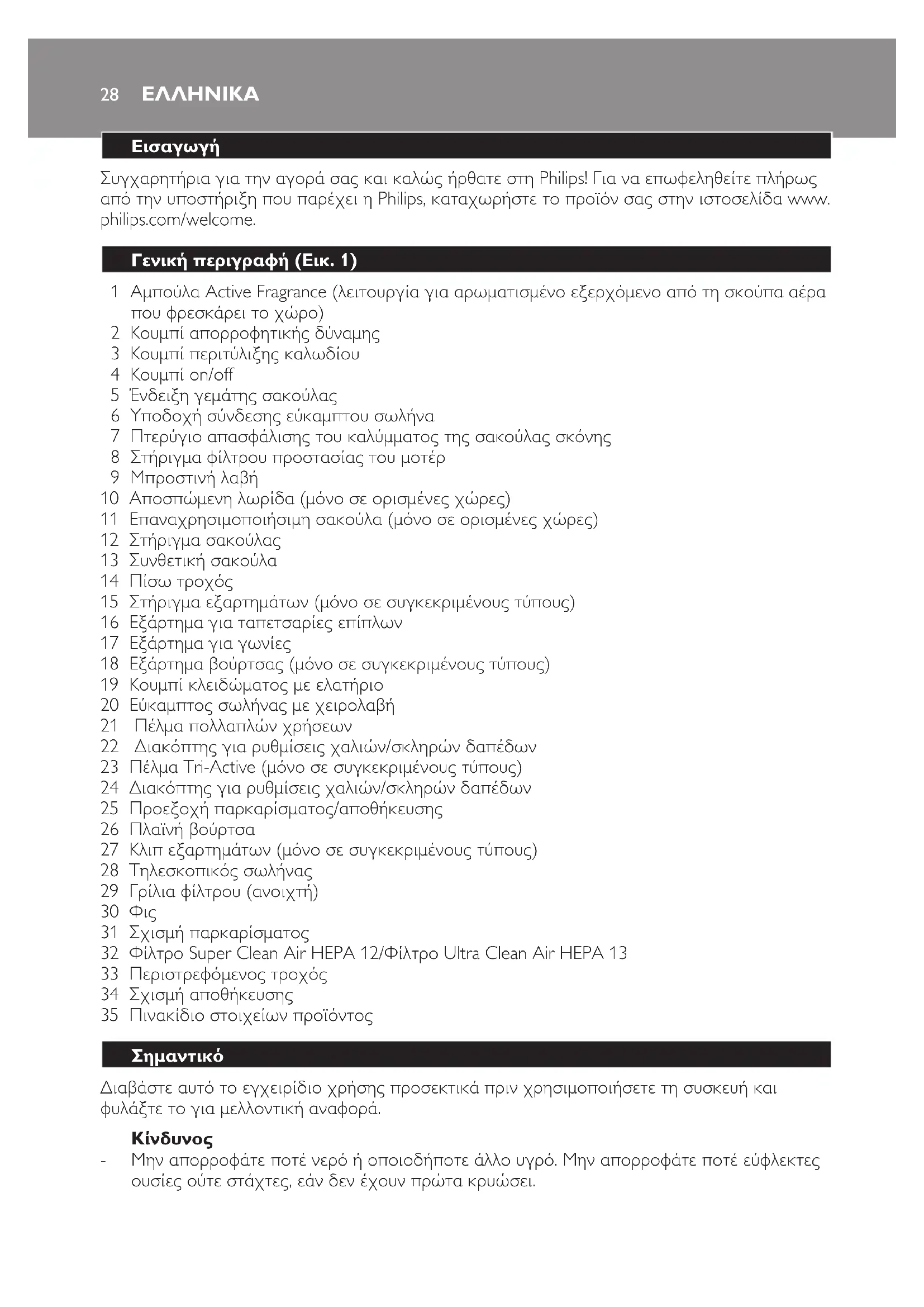Συγχαρητήρια για την αγορά σας και καλώς ήρθατε στη Philips! Για να επωφεληθείτε πλήρως από την υποστήριξη που παρέχει η Philips, καταχωρήστε το προϊόν σας στην ιστοσελίδα www. philips.com/welcome.