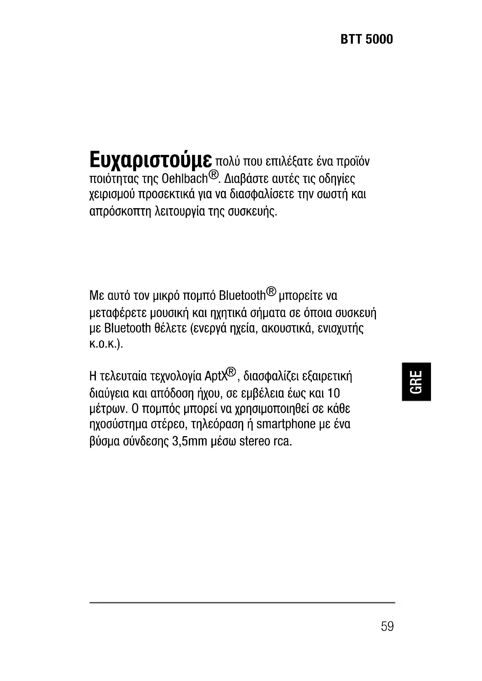 ΕΓΧΕΙΡΊΔΙΟ ΧΡΉΣΗΣ BTT 5000 Oehlbach