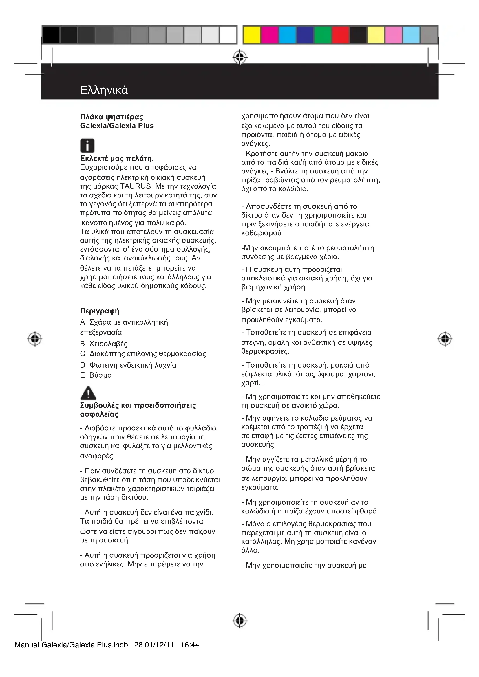 Galexia Plus - πλάκα ψησίματος TAURUS - Δωρεάν εγχειρίδιο χρήσης