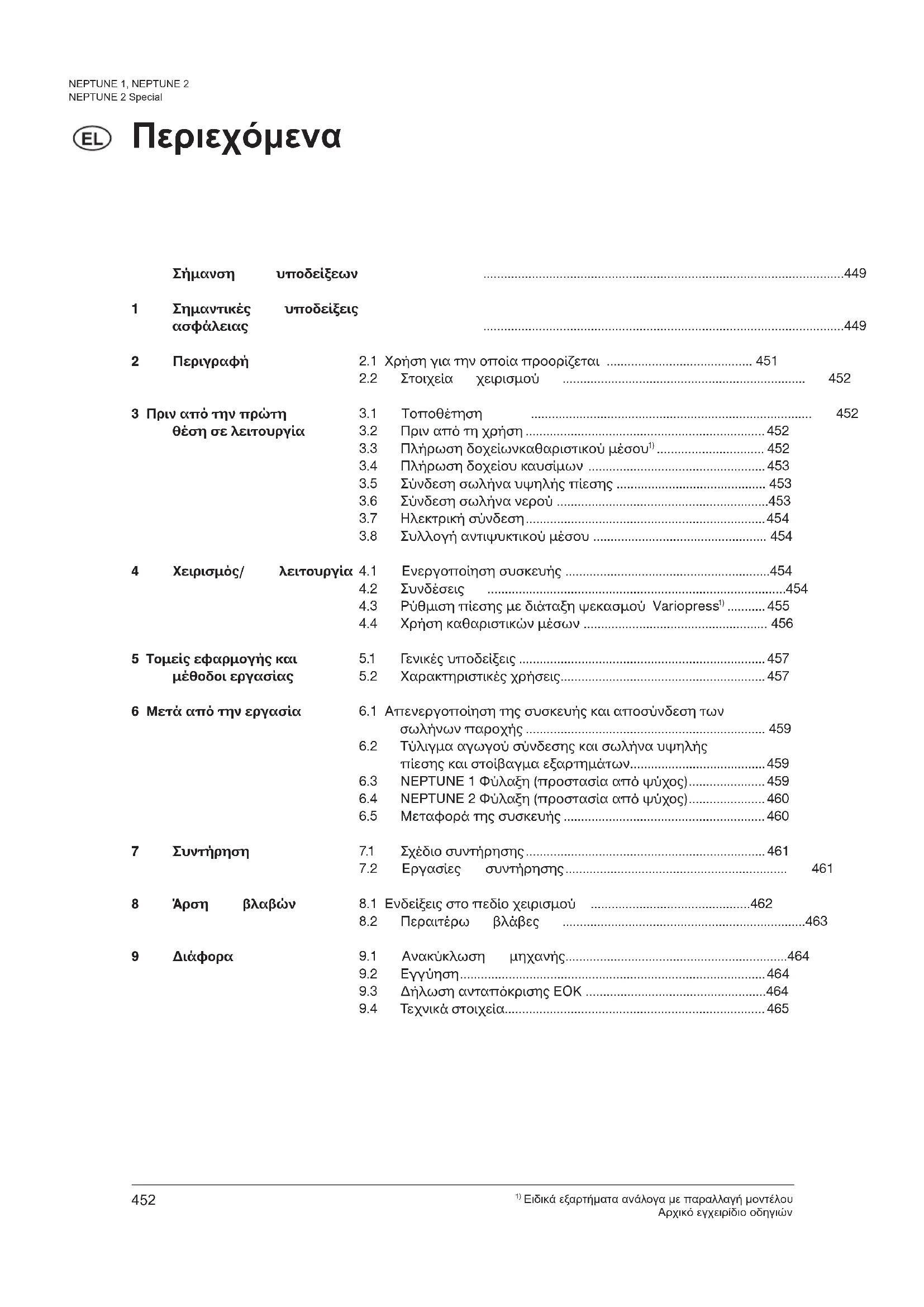 Ειδικά εξαρτήματα ανάλογα με παραλλαγή μοντέλου Αρχικό εγχειρίδιο οδηγιών NEPTUNE 1, NEPTUNE 2 NEPTUNE 2 Special Περιεχόμενα Σήμανση υποδείξεων 1 Σημαντικές υποδείξεις