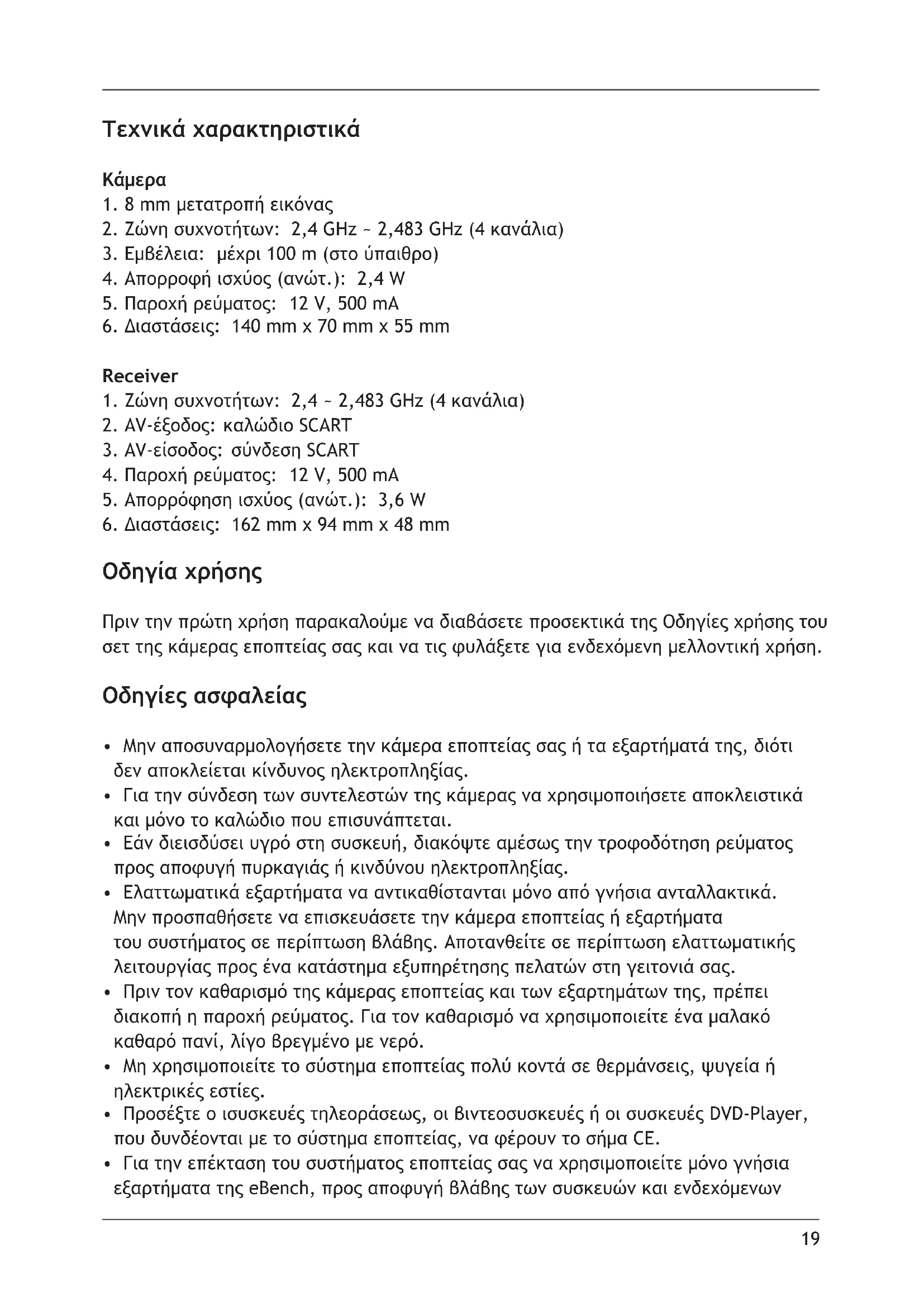 - Για την επέκταση του συστήματος εποπτείας σας να χρησιμοποιείτε μόνο γνήσια εξαρτήματα της eBench, προς αποφυγή βλάβης των συσκευών και ενδεχόμενων20