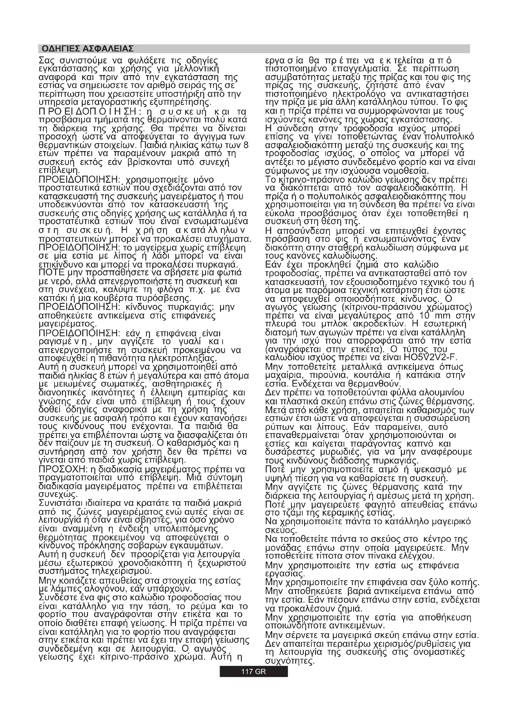 | Fc | Hζωνη Ελέγχου αφής ελαι πολύ θερμή καί Εχει ατενργοτοίησει áλούς τους θερμαντήρες. | Περιύνετε ἀς ὅτου μειώθει ηερμοκρασία. H Επιφάνει μαγερίματος θα ανακτηθέι autοματα δατανη θερμοκρασία φτάσει σε μία πιήπεραλανοντός. |