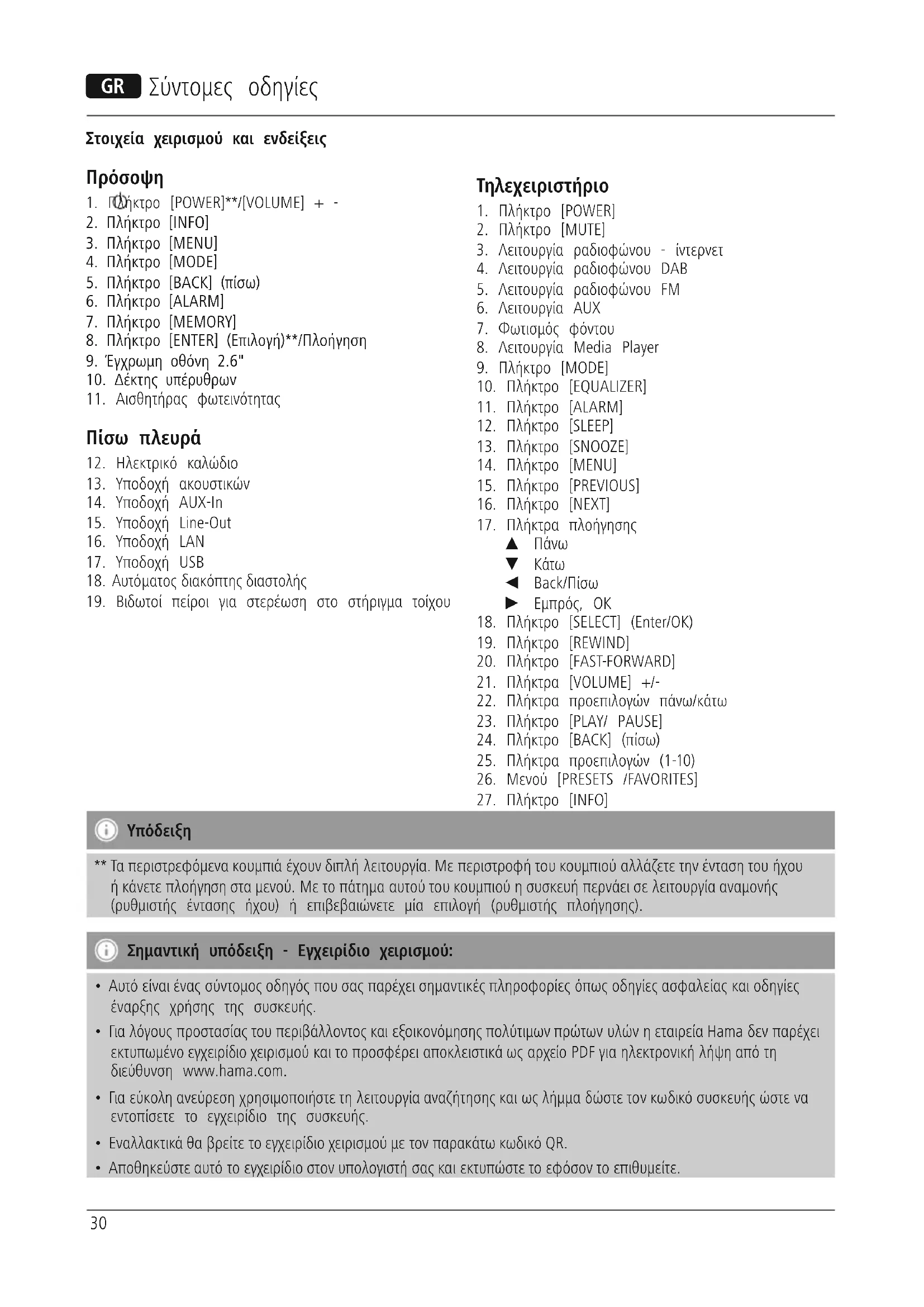 - Για λόγους προστασίας του περιβάλλοντος και εξοικονόμησης πολύτιμων πρώτων υλών η εταιρεία Hama δεν παρέχει εκτυπωμένο εγχειρίδιο χειρισμού και το προσφέρει αποκλειστικά ως αρχείο PDF για ηλεκτρονική λήψη από τη διεύθυνση www.hama.com.