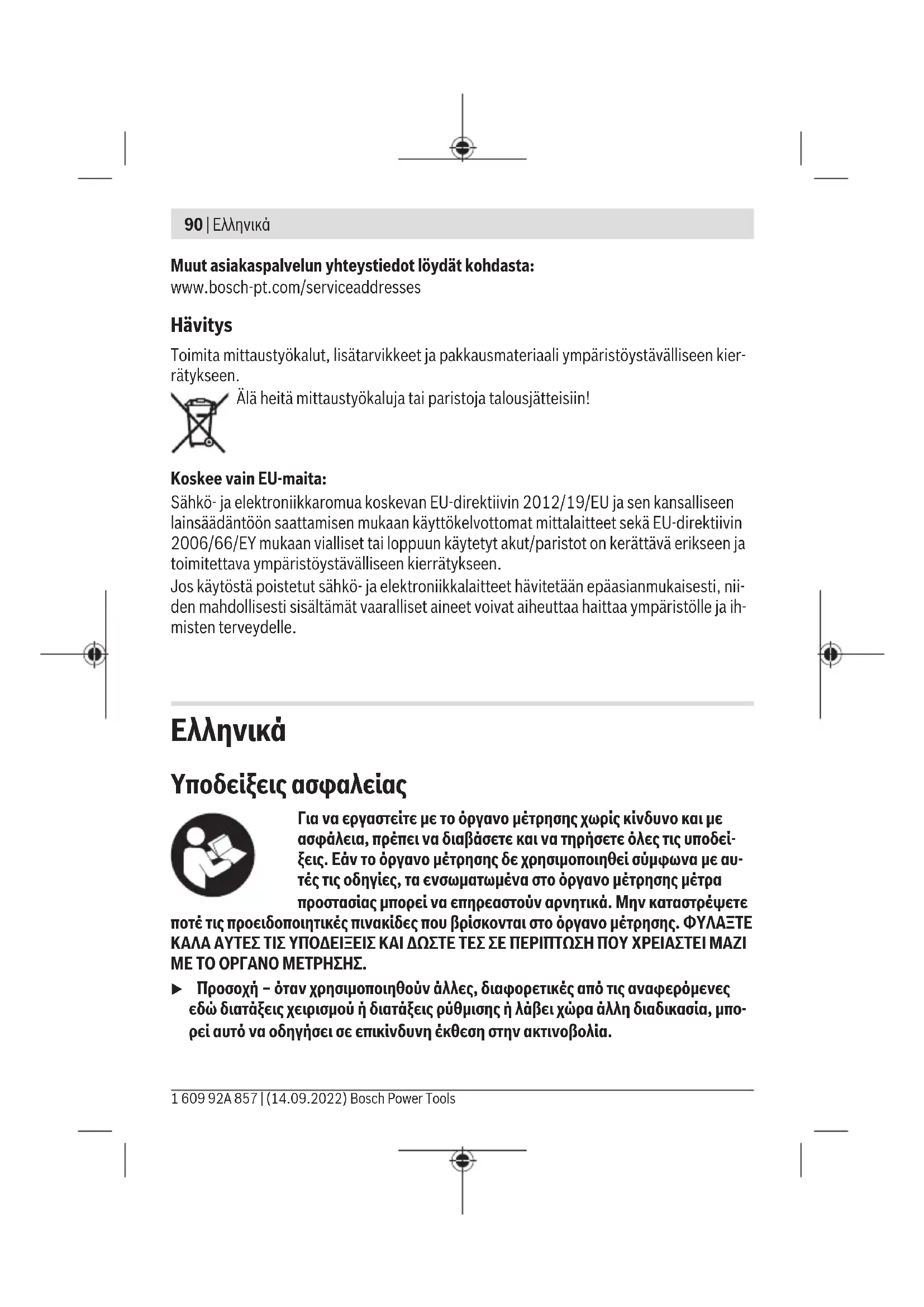 Robert Bosch A.E. Ερχείας 37 19400 Κορωπί – Αθήνα Τηλ.: 210 5701258 Φαξ: 210 5701283 Email: pt@gr.bosch.com www.bosch.com www.bosch-pt.gr Περαιτέρω διευθύνσεις σέρβις θα βρείτε στην ηλεκτρονική διεύθυνση: www.bosch-pt.com/serviceaddresses Bosch Power Tools 1 609 92A 857 | (14.09.2022)98 | Türkçe
