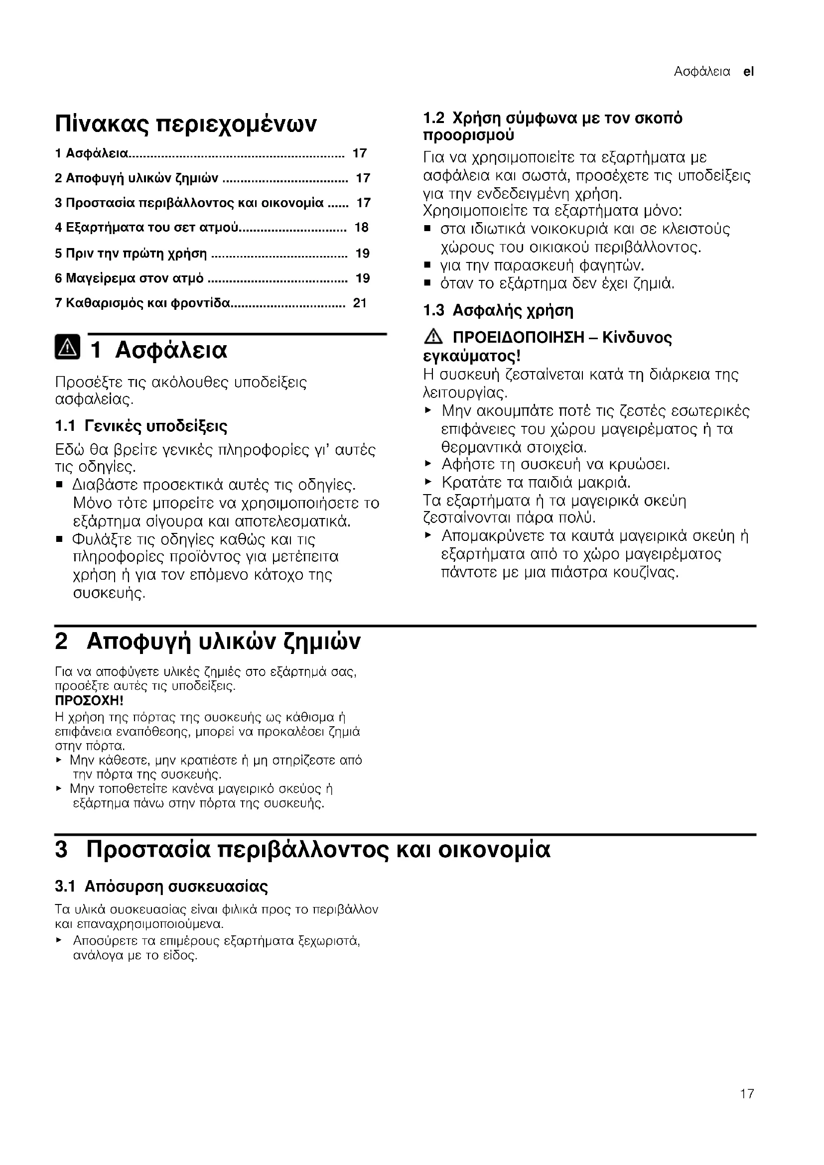5.1 Kαθαρισμός των εξαρτημάτων πρίν τήν πρώτη χρήση