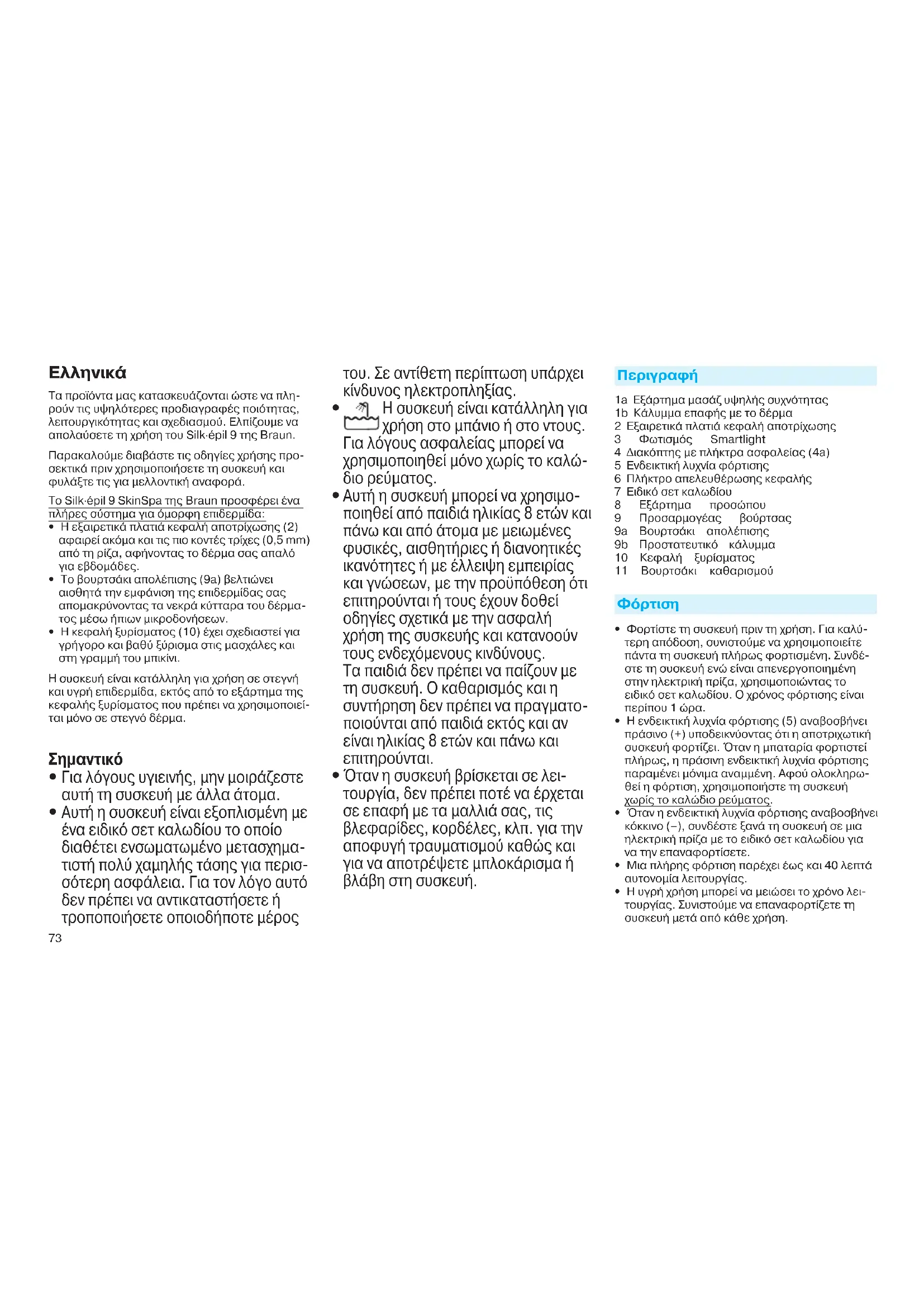 Τα προϊόντα μας κατασκευάζονται ώστε να πλη- ρούν τις υψηλότερες προδιαγραφές ποιότητας, λειτουργικότητας και σχεδιασμού. Ελπίζουμε να απολαύσετε τη χρήση του Silk·épil 9 της Braun. Παρακαλούμε διαβάστε τις οδηγίες χρήσης προ- σεκτικά πριν χρησιμοποιήσετε τη συσκευή και φυλάξτε τις για μελλοντική αναφορά. Το Silk·épil 9 SkinSpa της Braun προσφέρει ένα πλήρες σύστημα για όμορφη επιδερμίδα: