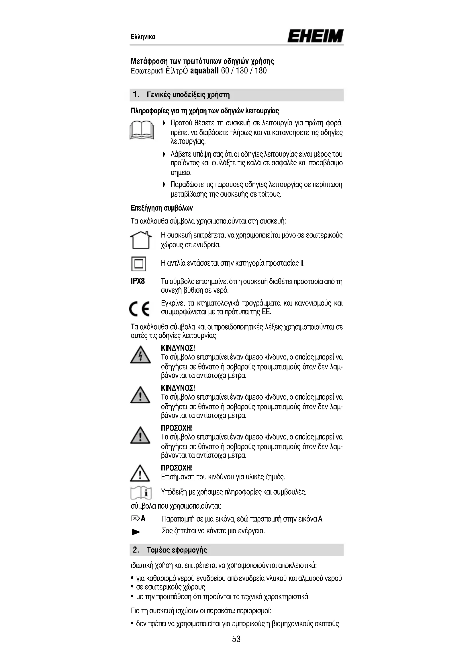 Σας ζητείται να κάνετε μια ενέργεια. Μετάφραση των πρωτότυπων οδηγιών χρήσης Εσωτερικfi ÊίλτρÔ aquaball 60 / 130 / 180