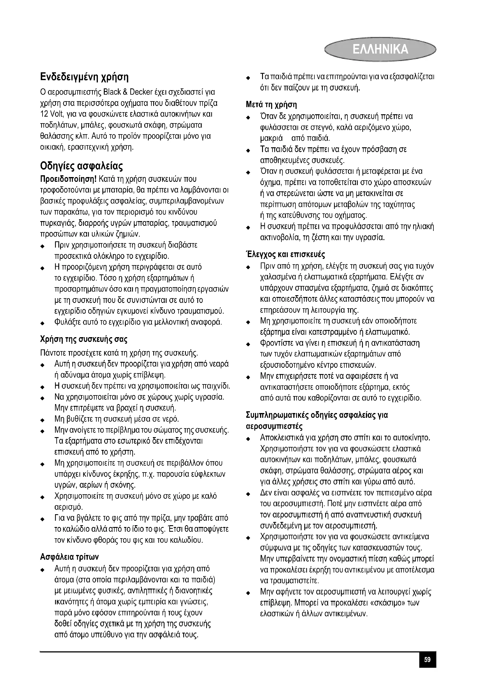 Aut n ouokeu/n/epyaieo ie kaawdo/oxpi ckaawdo tnc Black & Decker exei oxediotei etoi wote va aeitoupeiyia eyealo xpvikó diaotma ie tvv elaxiotn duvatn ouvtnpon. H adiaaleTTN kai IKAVOTIOINTIKn aeitoupyia ecaptatai aTTO TOWTN PPOVTIDa KAI TOV TAKTIKO kaapioo.