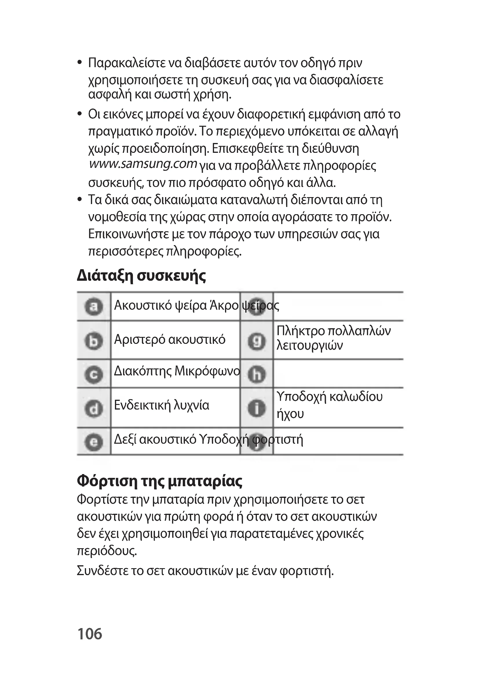 Οι εικόνες μπορεί να έχουν διαφορετική εμφάνιση από το πραγματικό προϊόν. Το περιεχόμενο υπόκειται σε αλλαγή χωρίς προειδοποίηση. Επισκεφθείτε τη διεύθυνση www.samsung.com για να προβάλλετε πληροφορίες συσκευής, τον πιο πρόσφατο οδηγό και άλλα.