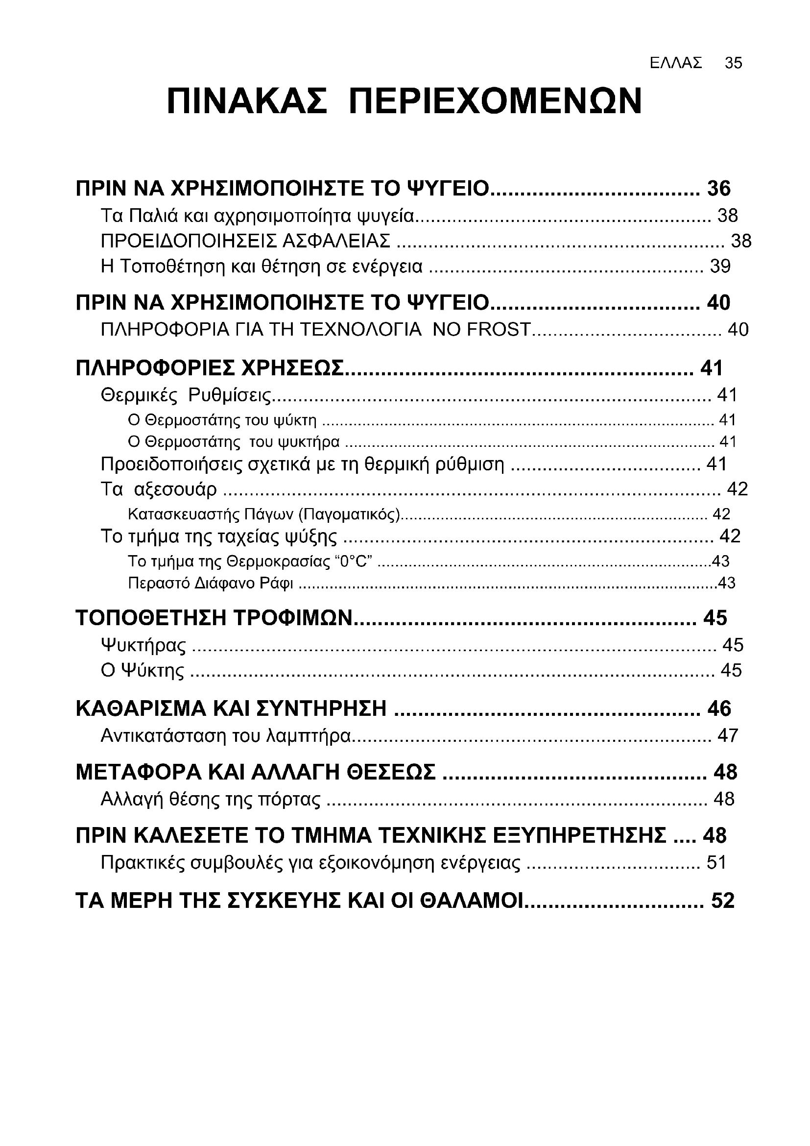 - ΠΙΝΑΚΑΣ ΠΕΡΙΕΧΟΜΕΝΩΝ ΠΡΙΝ ΝΑ ΧΡΗΣΙΜΟΠΟΙΗΣΤΕ ΤΟ ΨΥΓΕΙΟ p. 36