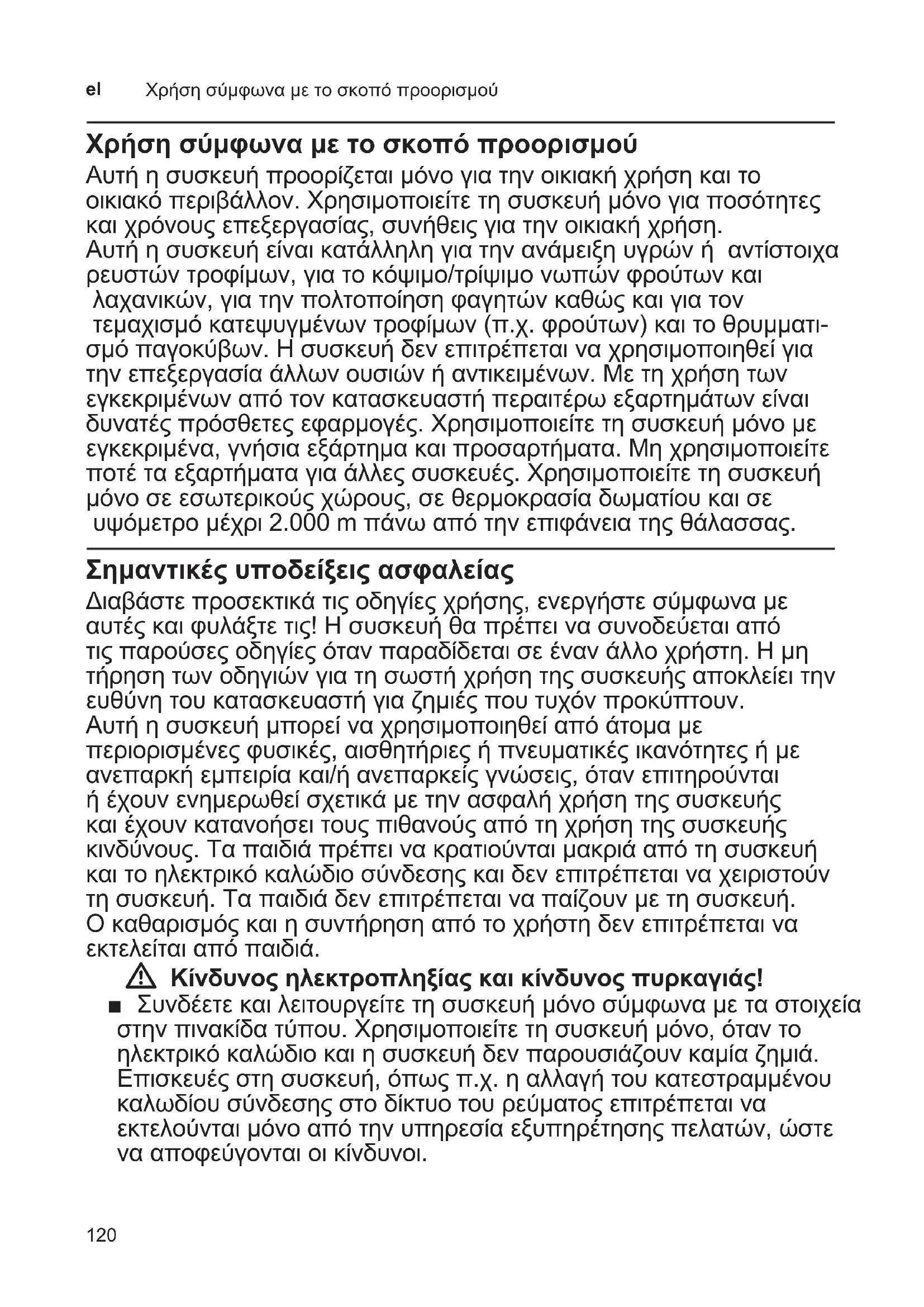 - Περιεχόμενα Χρήση σύμφωνα με το σκοπό προορισμού p. 120