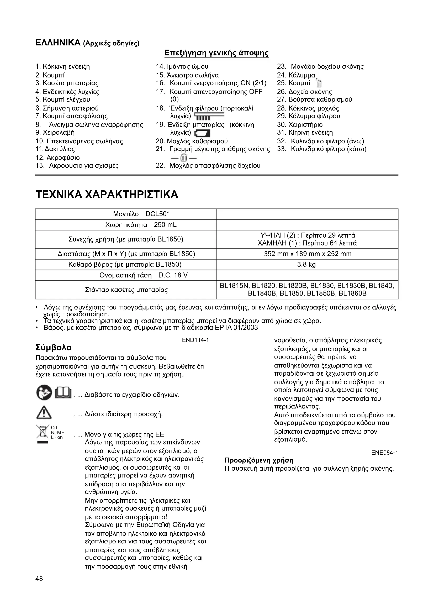 Κατεβάστε τις οδηγίες για το Ηλεκτρική σκούπα σε μορφή PDF δωρεάν! Βρείτε το εγχειρίδιό σας DCL501 - MAKITA και πάρτε ξανά την ηλεκτρονική σας συσκευή στα χέρια σας. Σε αυτή τη σελίδα δημοσιεύονται όλα τα έγγραφα που απαιτούνται για τη χρήση της συσκευής σας. DCL501 της μάρκας MAKITA.