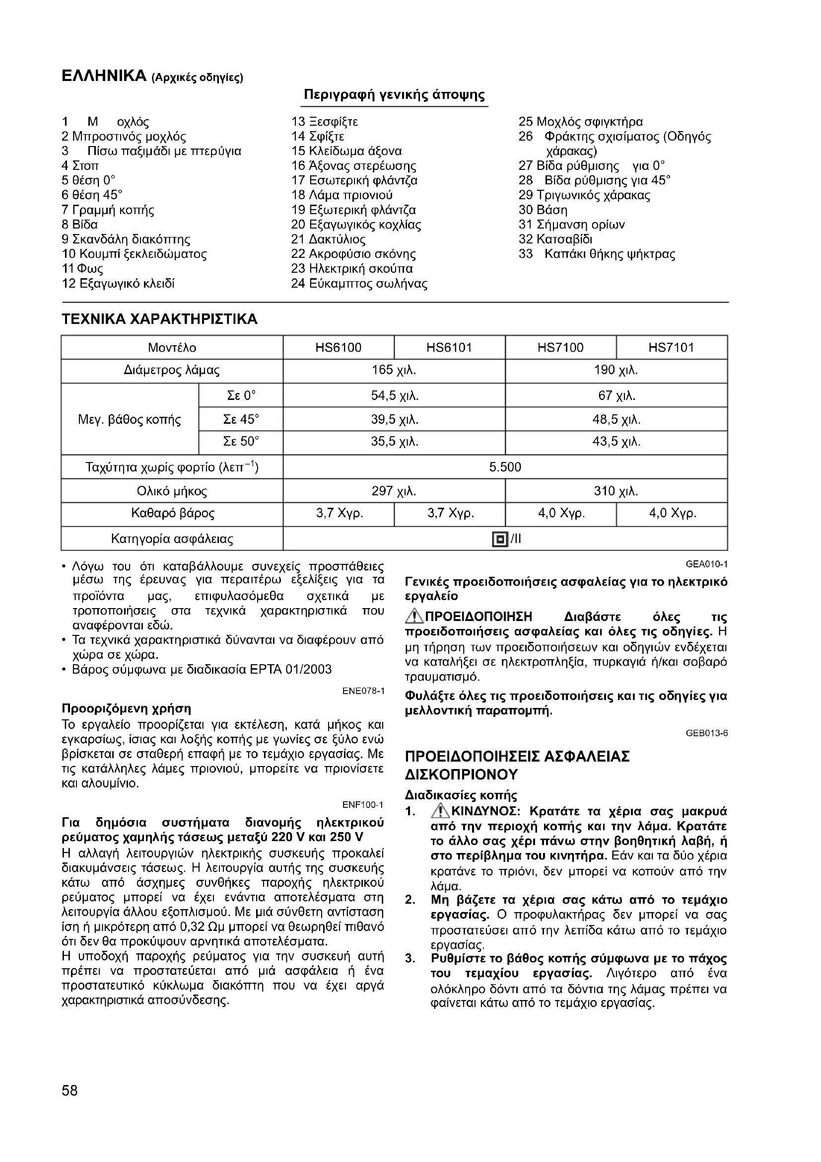 ΠΡΟΕΙΔΟΠΟΙΗΣΗ Διαβάστε όλες τις προειδοποιήσεις ασφαλείας και όλες τις οδηγίες. Η μη τήρηση των προειδοποιήσεων και οδηγιών ενδέχεται να καταλήξει σε ηλεκτροπληξία, πυρκαγιά ή/και σοβαρό τραυματισμό. Φυλάξτε όλες τις προειδοποιήσεις και τις οδηγίες για μελλοντική παραπομπή. GEB013-6 ΠΡΟΕΙΔΟΠΟΙΗΣΕΙΣ ΑΣΦΑΛΕΙΑΣ ΔΙΣΚΟΠΡΙΟΝΟΥ Διαδικασίες κοπής