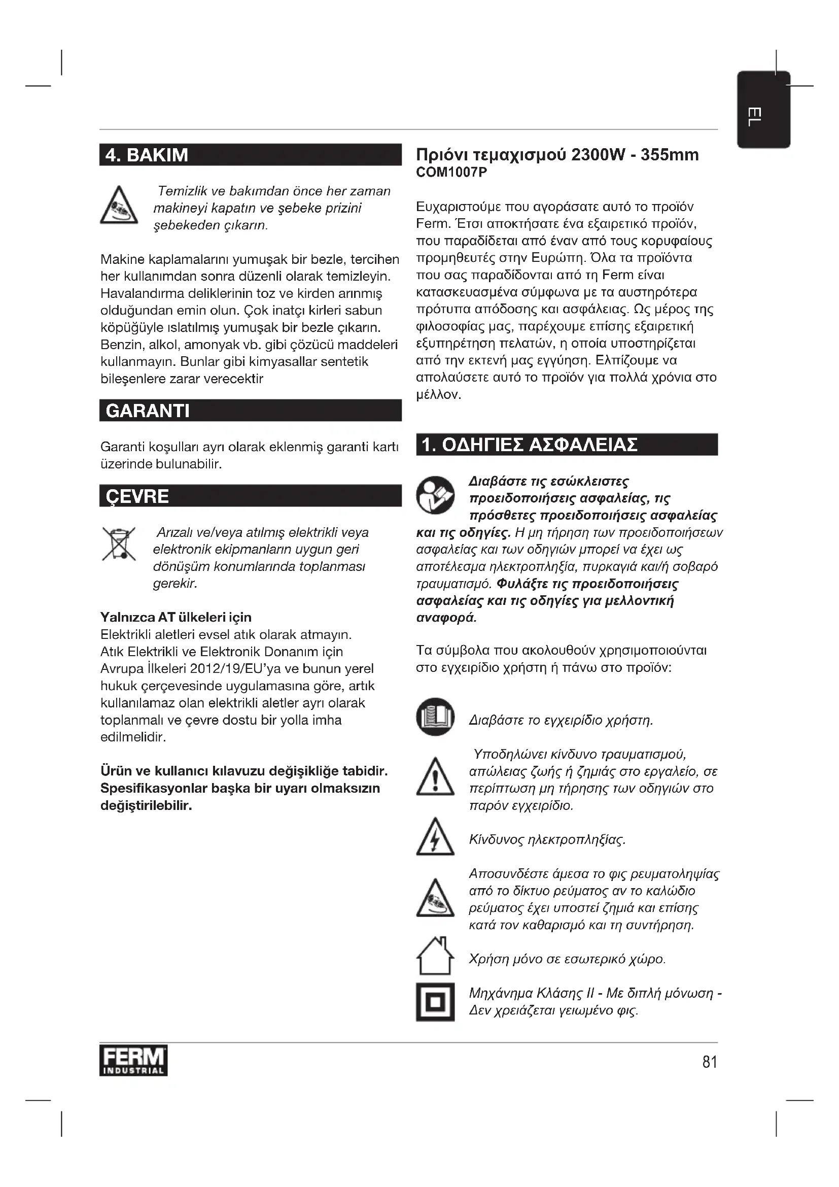 ΕΓΧΕΙΡΊΔΙΟ ΧΡΉΣΗΣ COM1007P Ferm