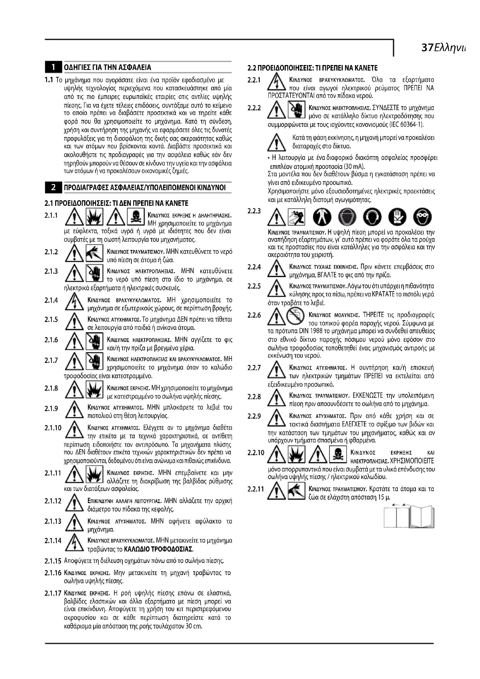 Κινδυνοσ τραυματισμου. Κρατάτε τα άτοα και τα ζώα σε ελάχιστη απόσταση 15 .38 Ελληνικά