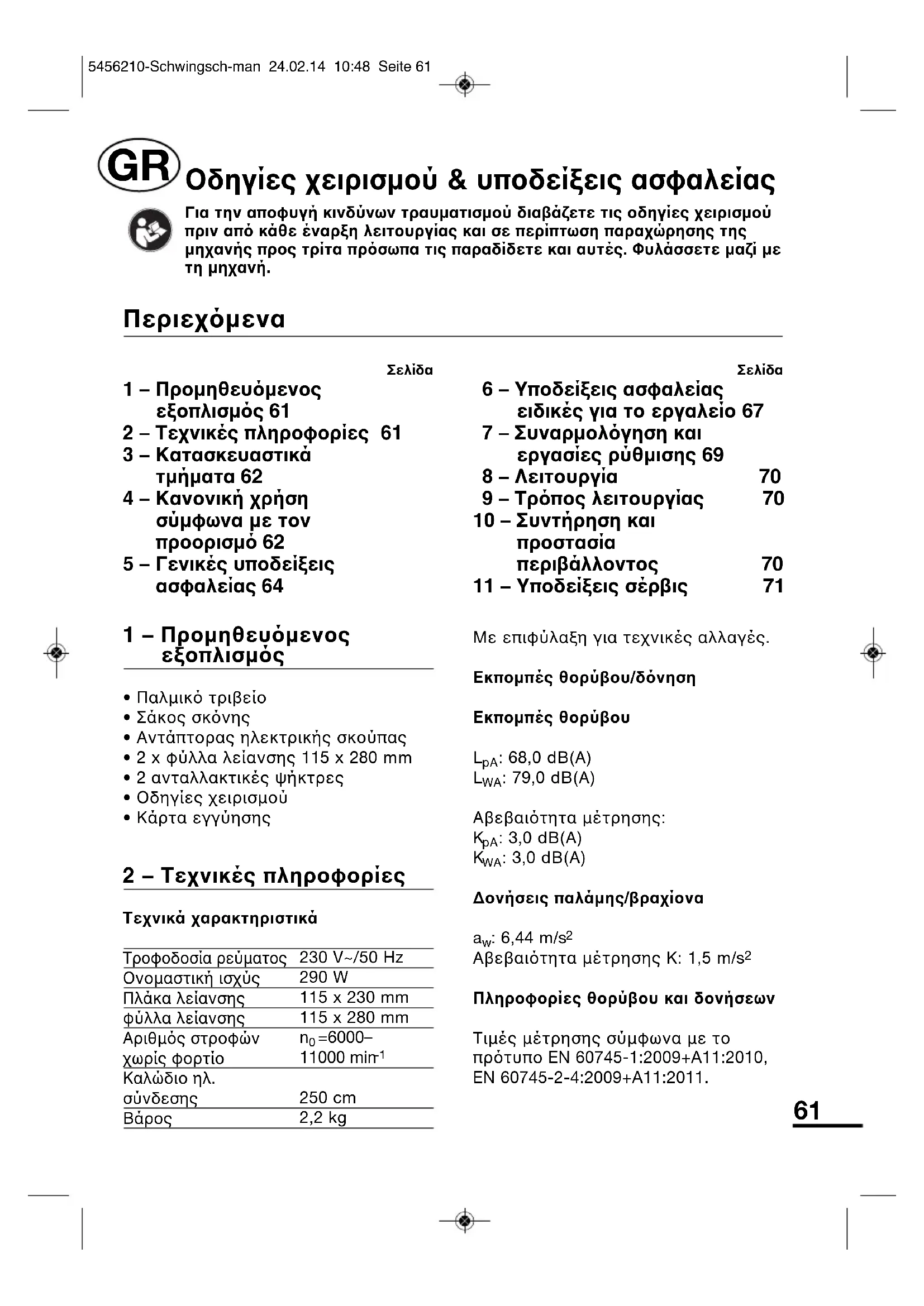 Tiuεc μετρησς σύμφωνα με το προτυπo EN 60745-1:2009+A11:2010, EN 60745-2-4:2009+A11:2011.