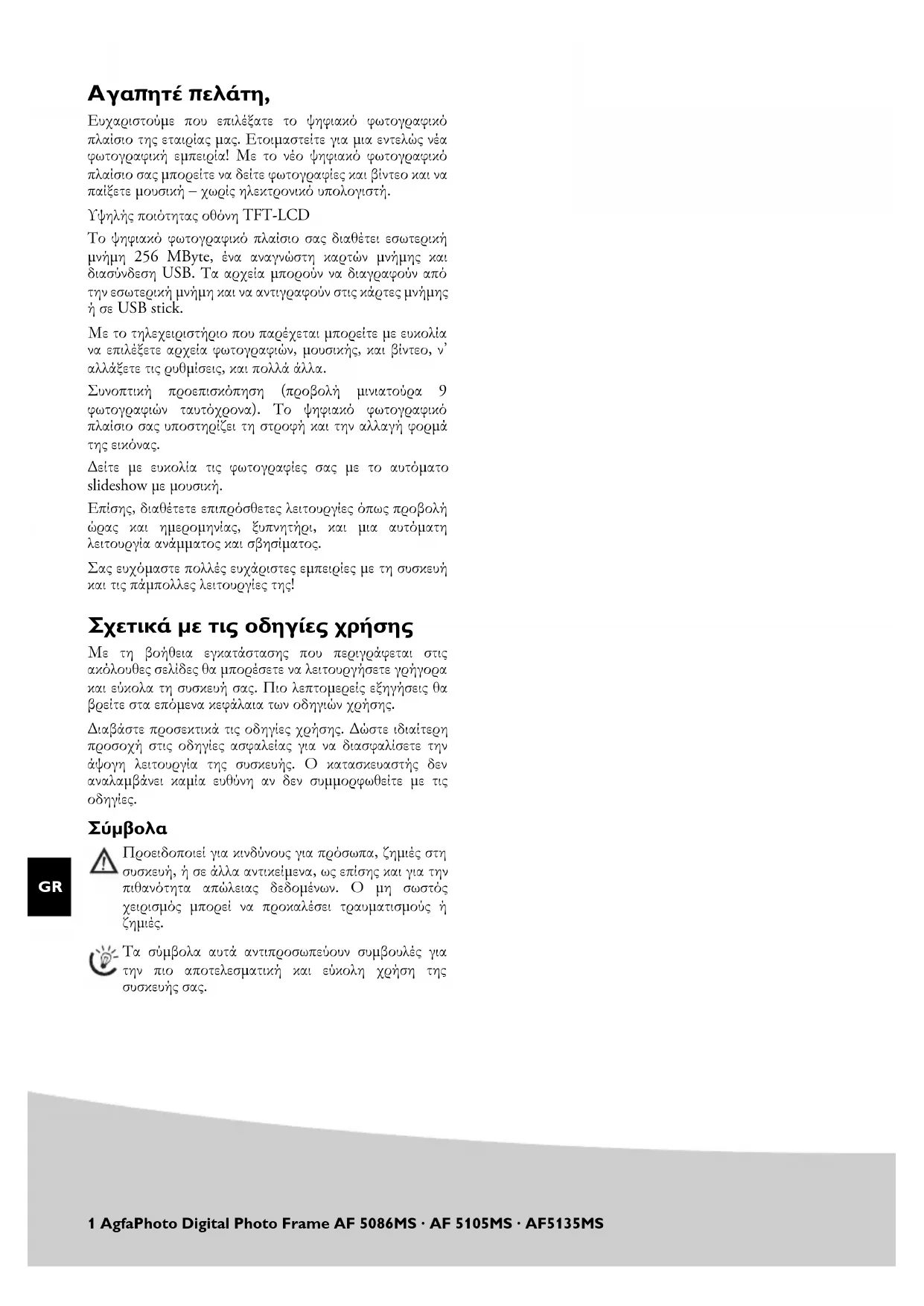 Oa ta deoieva xonoiioovtau movo wg axiec axoogac. H AgfaPhoto enuolaoosetau tou dixwmuotoc v npoei o aaiayeg tou npovtox wqic npoedoin.