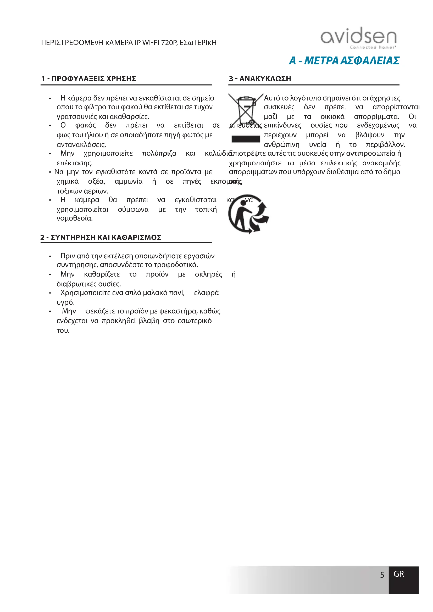 http://sav.avidsen.com Η Avidsen δεσμεύεται να διαθέσει ένα απόθεμα ανταλλακτικώνγιατοπροϊόναυτόγιατηδιάρκειατης συμβατικήςπεριόδουτηςεγγύησης.