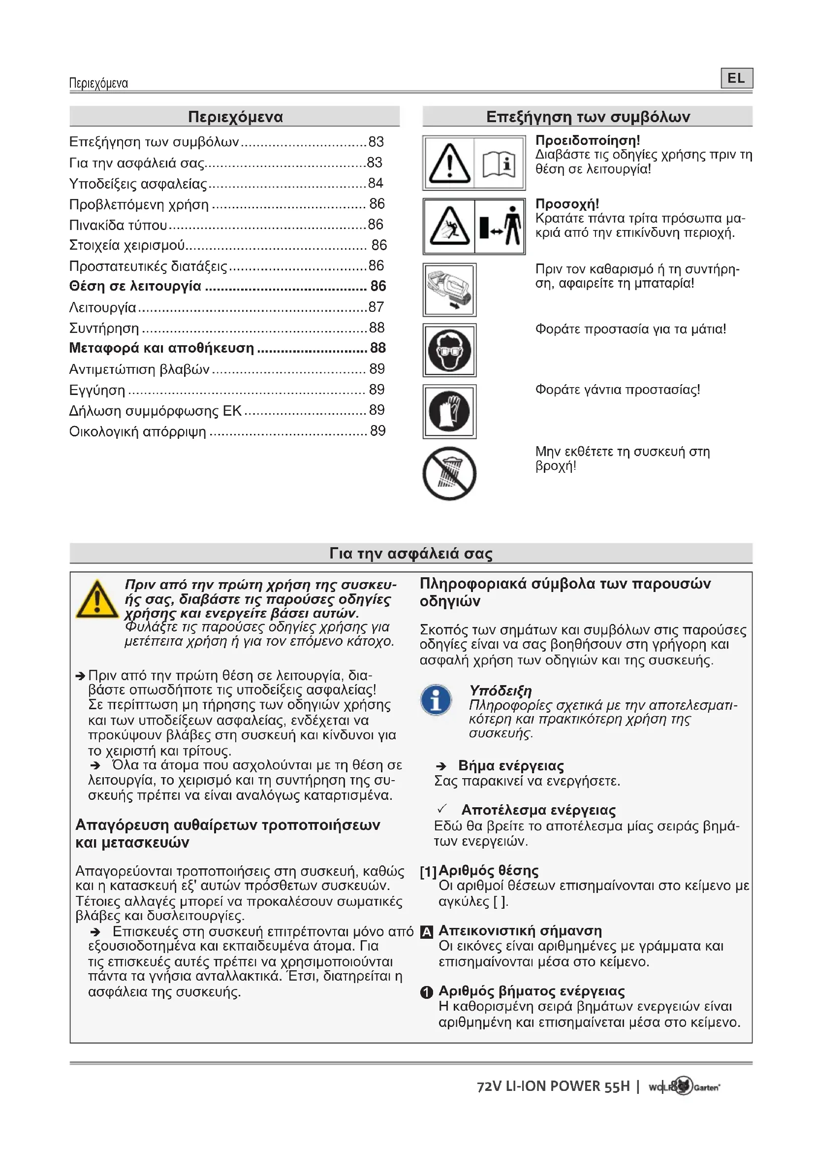 ΕΓΧΕΙΡΊΔΙΟ ΧΡΉΣΗΣ 72V LiIon Accu Power 55H Wolf Garten