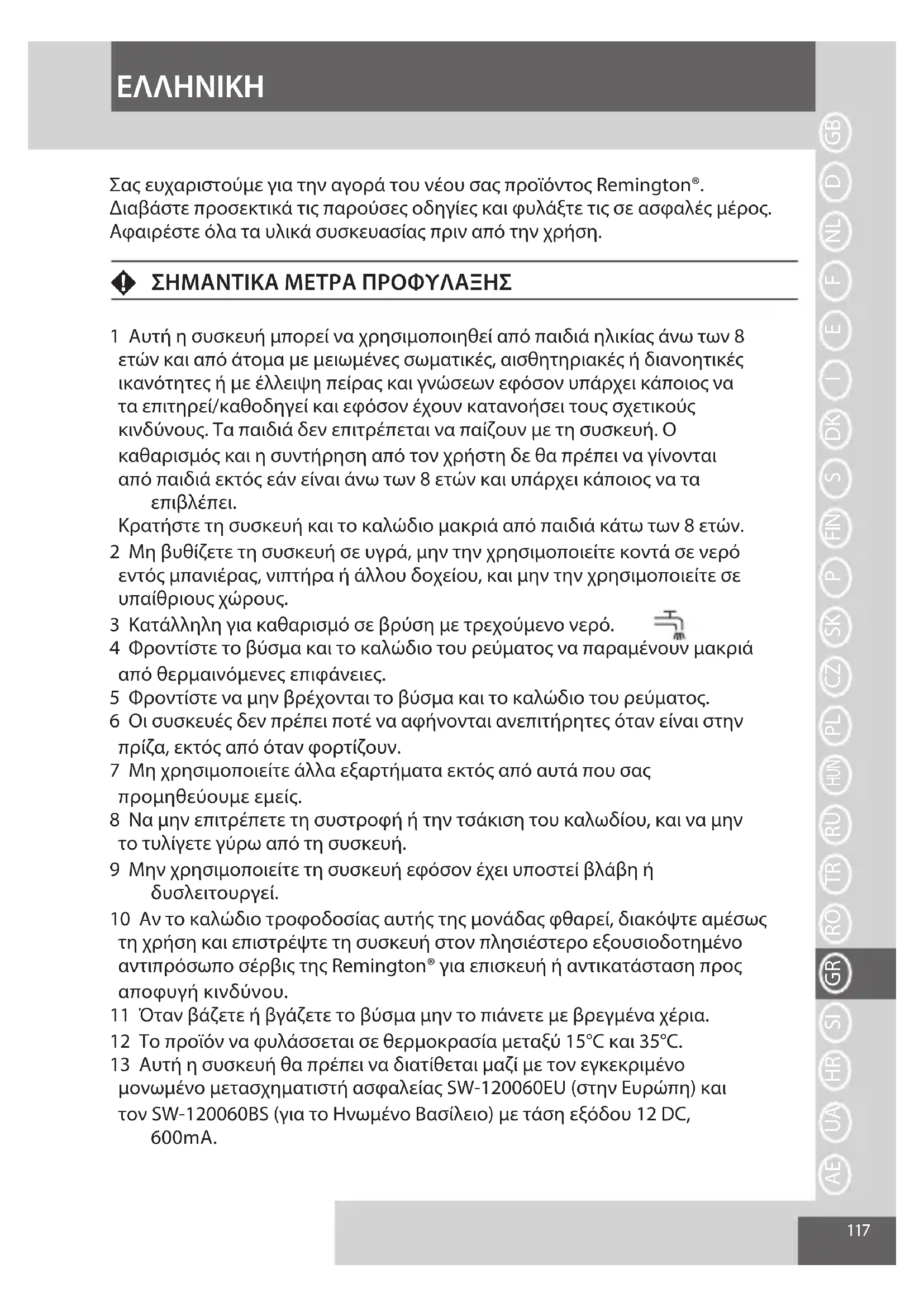 Σας ευχαριστούμε για την αγορά του νέου σας προϊόντος Remington®. Διαβάστε προσεκτικά τις παρούσες οδηγίες και φυλάξτε τις σε ασφαλές μέρος. Αφαιρέστε όλα τα υλικά συσκευασίας πριν από την χρήση.