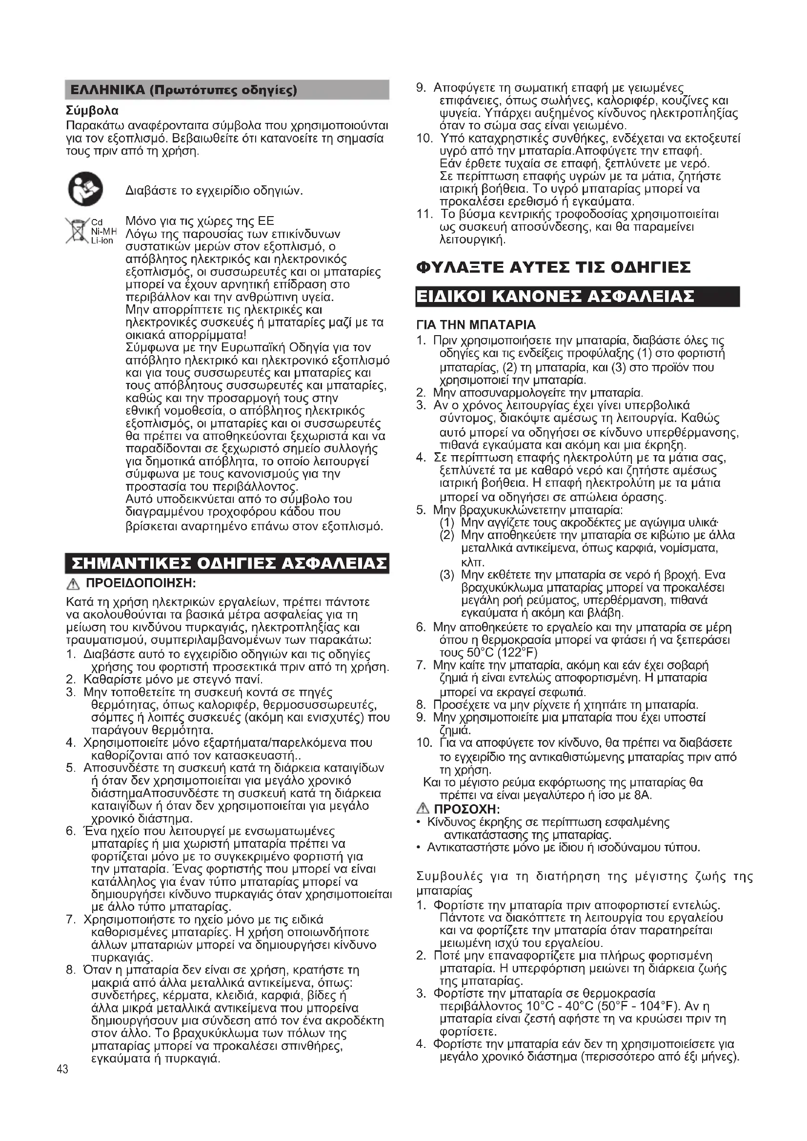 Li-ion ΕΛΛΗΝΙΚΑ (Πρωτότυπες οδηγίες)