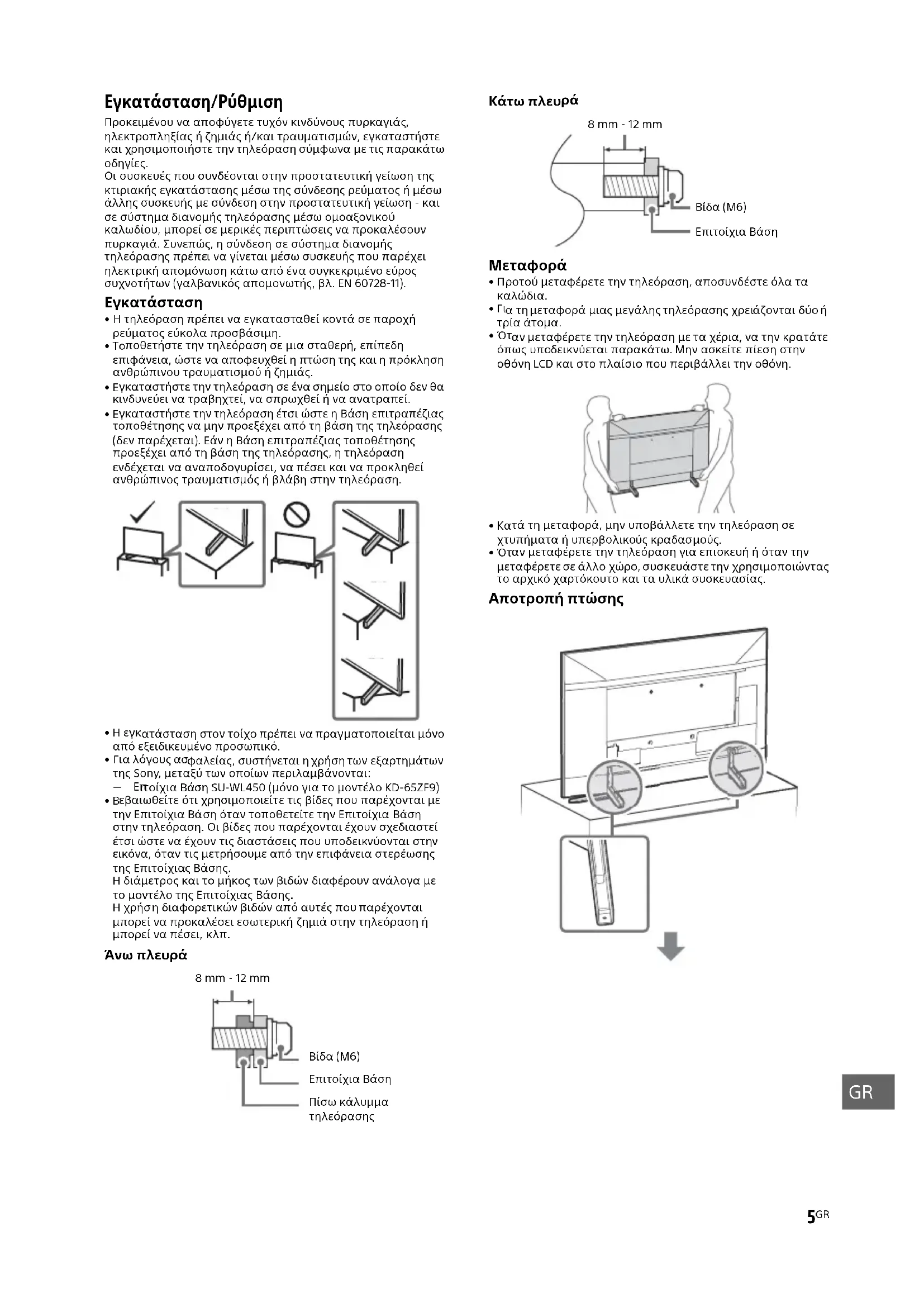 αν μεταφέρετε την τηλεόραση για επισκευή ή όταν την μεταφέρετε σε άλλο χώρο, συσκευάστε την χρησιμοποιώντας το αρχικό χαρτόκουτο και τα υλικά συσκευασίας. Αποτροπή πτώσης Βίδα (M6) Επιτοίχια Βάση 8 mm - 12 mm Πίσω κάλυμμα