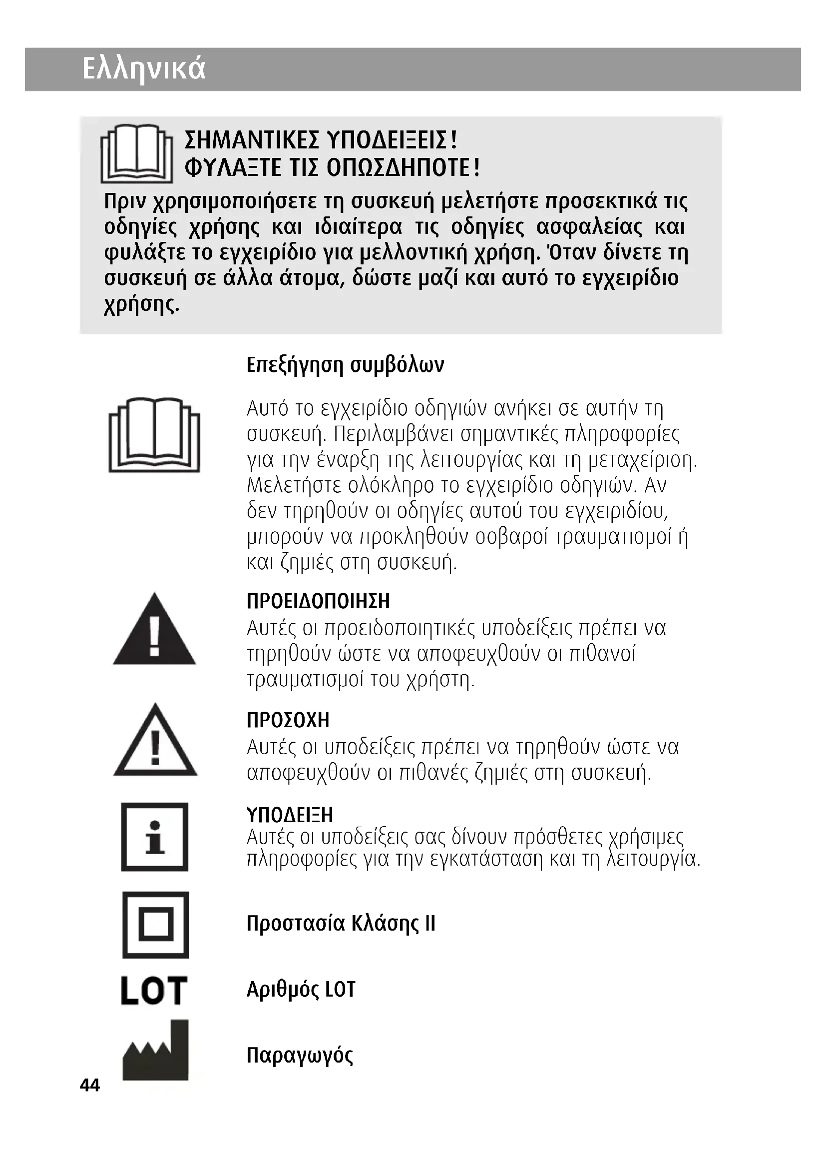 Πριν χρησιμοποιήσετε τη συσκευή μελετήστε προσεκτικά τις οδηγίες χρήσης και ιδιαίτερα τις οδηγίες ασφαλείας και φυλάξτε το εγχειρίδιο για μελλοντική χρήση. Όταν δίνετε τη συσκευή σε άλλα άτομα, δώστε μαζί και αυτό το εγχειρίδιο