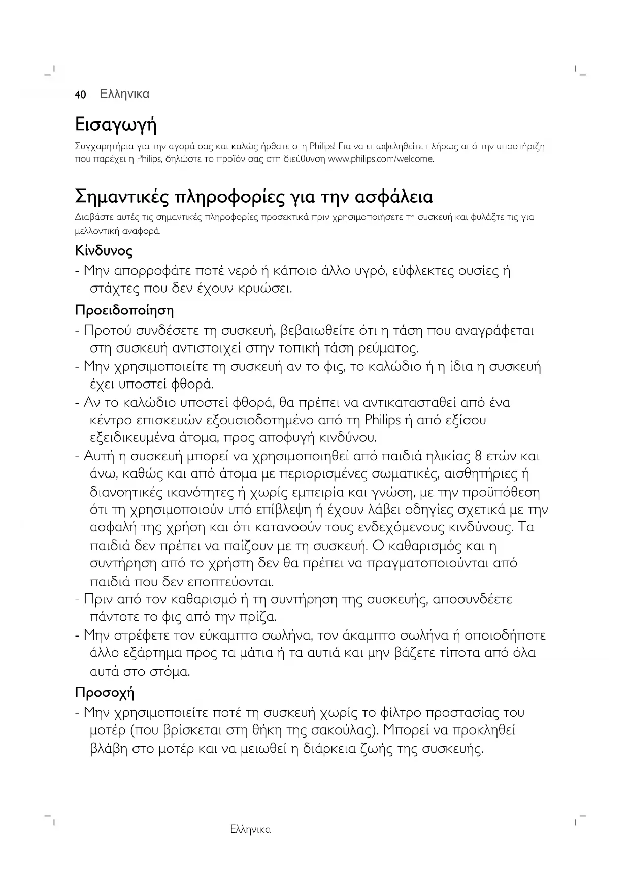 Συγχαρητήρια για την αγορά σας και καλώς ήρθατε στη Philips! Για να επωφεληθείτε πλήρως από την υποστήριξη που παρέχει η Philips, δηλώστε το προϊόν σας στη διεύθυνση www.philips.com/welcome. Σημαντικές πληροφορίες για την ασφάλεια Διαβάστε αυτές τις σημαντικές πληροφορίες προσεκτικά πριν χρησιμοποιήσετε τη συσκευή και φυλάξτε τις για μελλοντική αναφορά.
