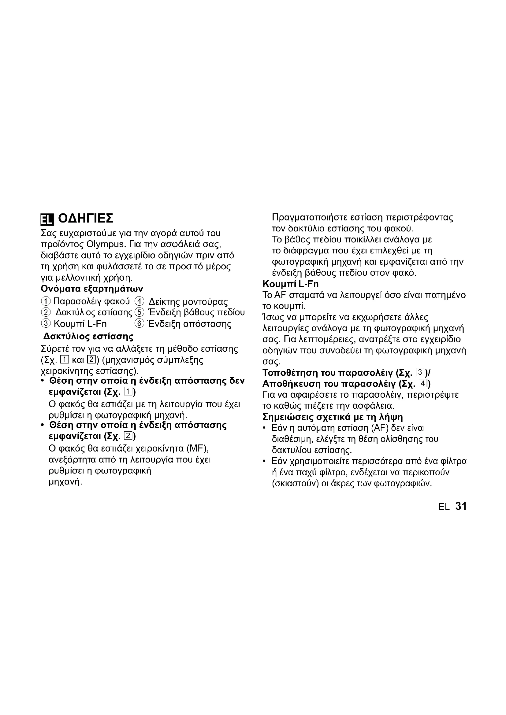 ΕΓΧΕΙΡΊΔΙΟ ΧΡΉΣΗΣ M.Zuiko Digital 45mm f1.8 OLYMPUS