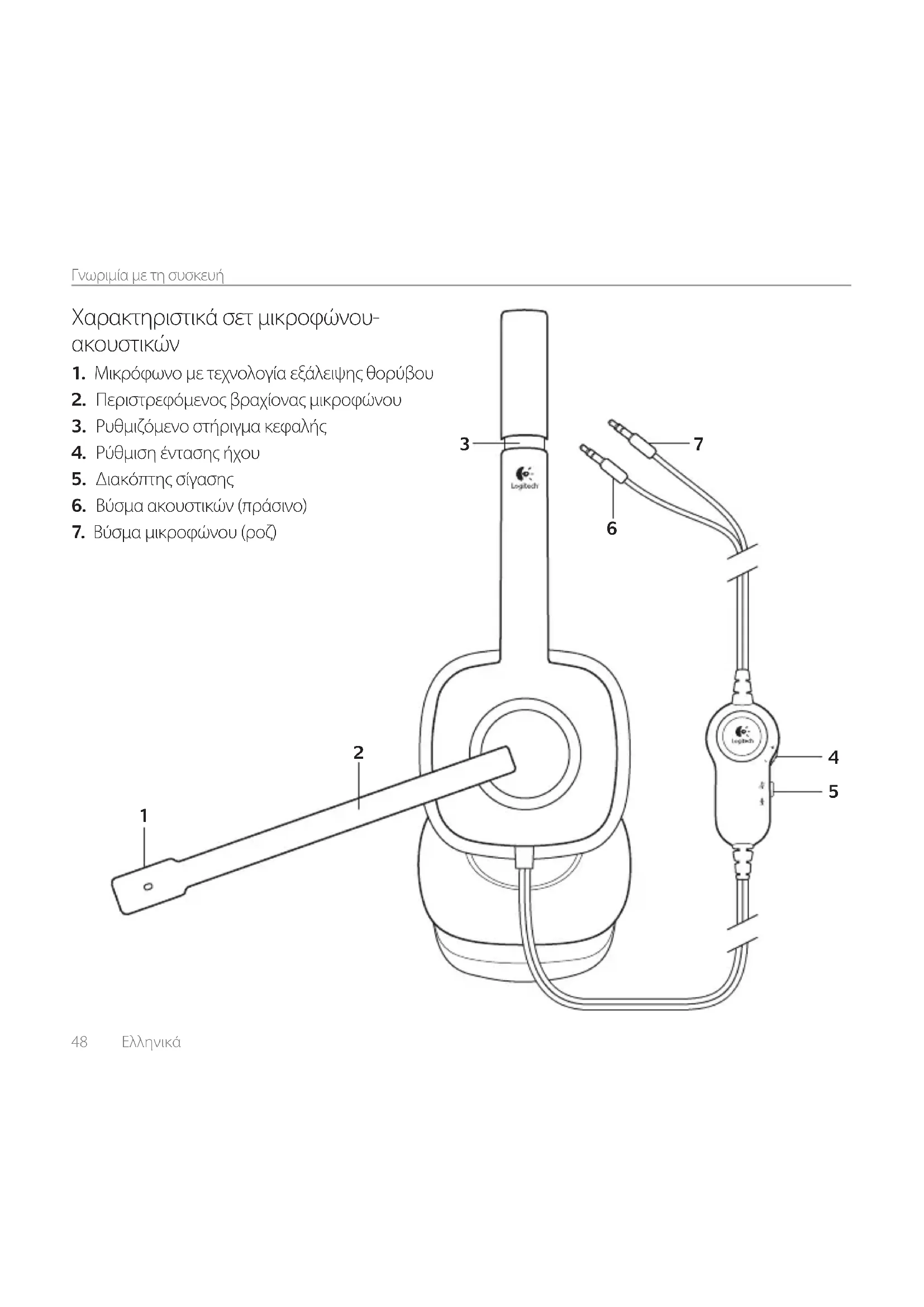 Συνδέστε το σετ μικροφώνου-ακουστικών50 Ελληνικά Γνωριμία με τη συσκευή 2Ελληνικά 51 Logitech® Stereo Headset H150