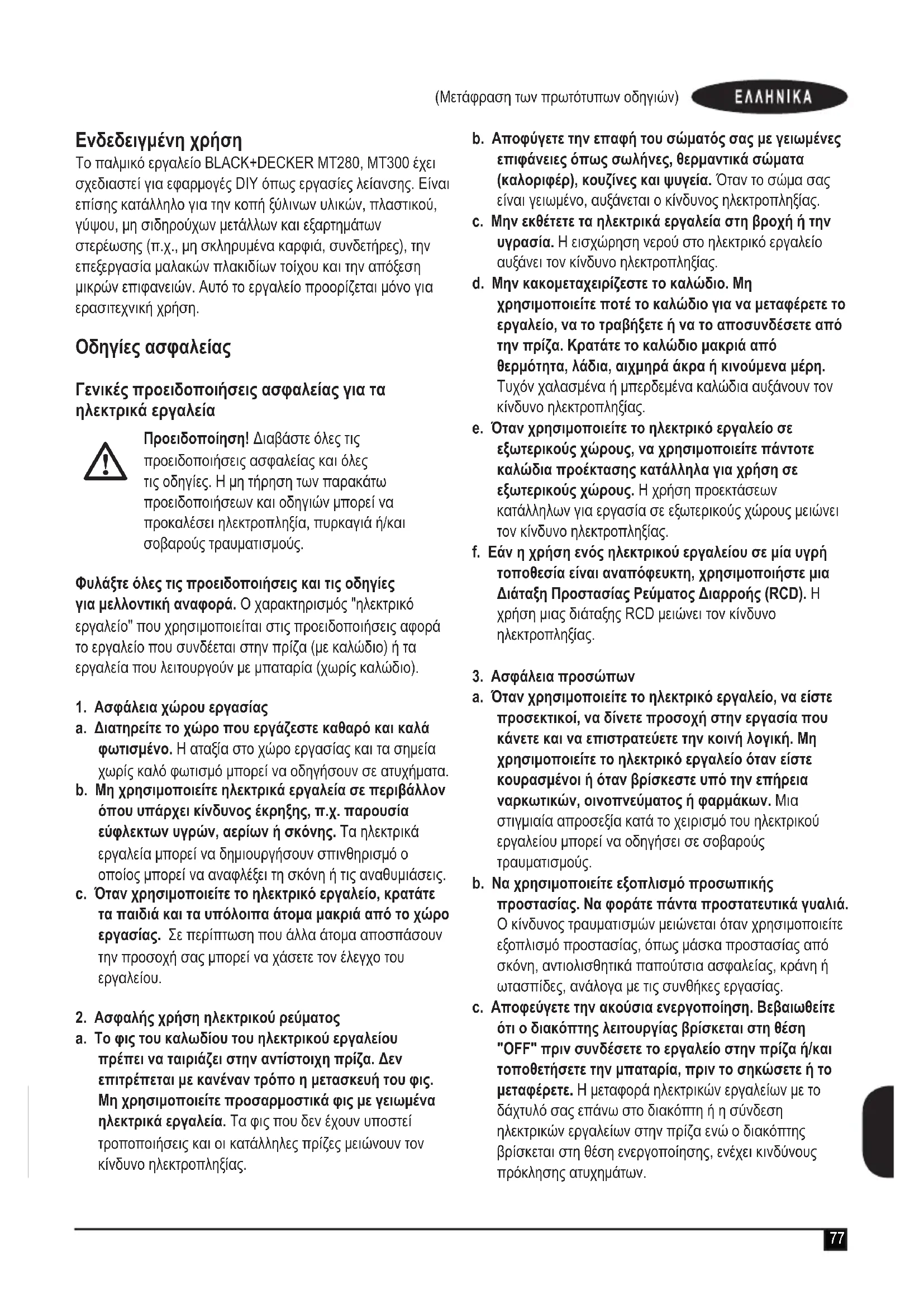 ΕΓΧΕΙΡΊΔΙΟ ΧΡΉΣΗΣ MT300 BLACK & DECKER